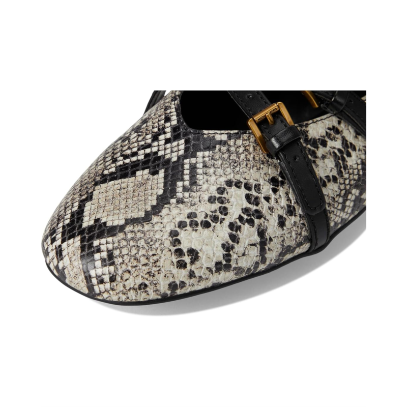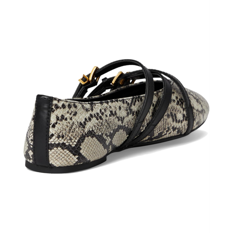 - Targeting bold youthful spirit with a casual-chic vibe designed for the fashion forward individual, this square toe ballet flat with strappy upper detail on flex outsole is a fresh take on a timeless silhouette with edgy details that make every look stand out. Crafted from leather upper, lining, and insole, this pair of shoes features round toe, three strap buckle closure.