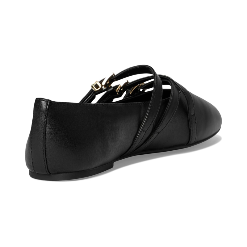 - Targeting bold youthful spirit with a casual-chic vibe designed for the fashion forward individual, this square toe ballet flat with strappy upper detail on flex outsole is a fresh take on a timeless silhouette with edgy details that make every look stand out. Crafted from leather upper, lining, and insole, this pair of shoes features round toe, three strap buckle closure.