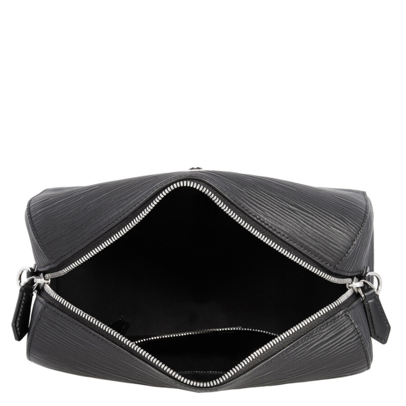 MontBlanc Crossbody. SKU: 198187. Color: Black. Montblanc 142 Bag. Inspired by the iconic Meisterstuck 142 fountain pens, this compact crossbody bag blends vintage charm with modern functionality. Crafted from soft leather, it features a main compartment with an interior zip pocket, plus an offset front zip pocket for easy access. Finished with metal buckles and a detachable leather shoulder strap for versatile styling. Dimensions: 9.45 x 4.53 x 5.12 inches.