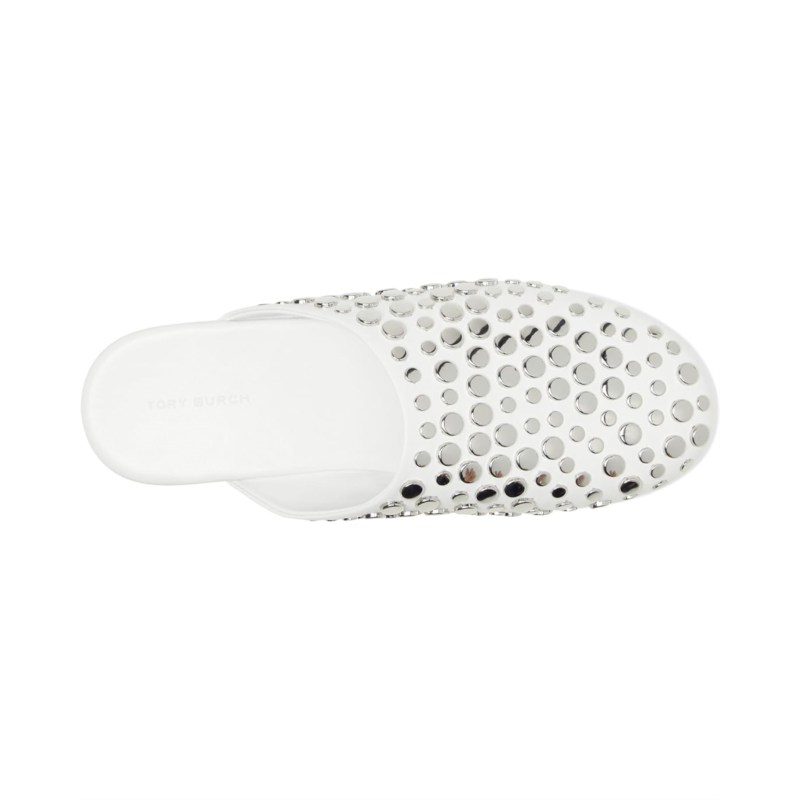 - Add a touch of flair to your look choosing the Tory Burch Studded Mules. Featuring rubber upper with eye-catching studded detail, these mules are a must-have for the fashion-forward woman. The leather lining and insole provide a luxurious feel, while the slip-on style and round toes offer effortless style.