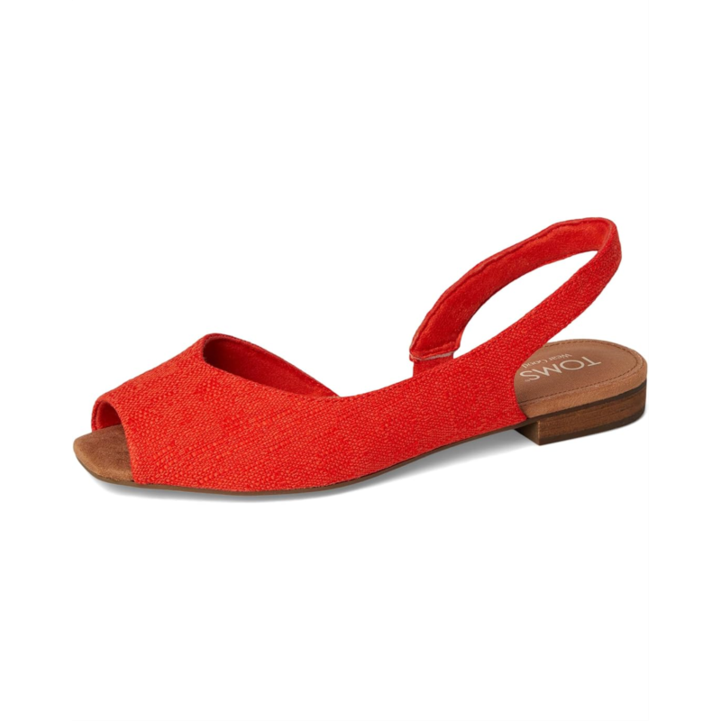 - Sleek and stylish, the TOMS Briella Slingback is perfect for daily use. Crafted from nylon upper, polyester lining, and polyurethane insole, this pair of sandals features peep toe style, slingback strap for perfect fit, an asymmetric Dorsay and mini heel. It has custom CloudBound foam insoles for all-day comfort and support, and stacked leather wrap midsole.