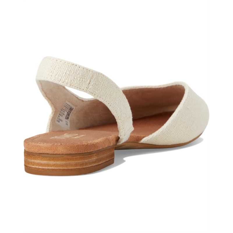 - Step out in style wearing the TOMS Alene slingback flats! The trendy two-tone textile upper and softly squared toe shape make these shoes a versatile addition to any outfit. With textile lining and Custom CloudBound foam insoles, youll stay comfortable all day long. The leather-wrapped mini heel adds a subtle touch of elegance to these already chic flats.