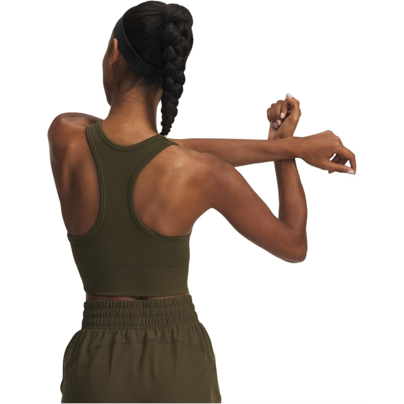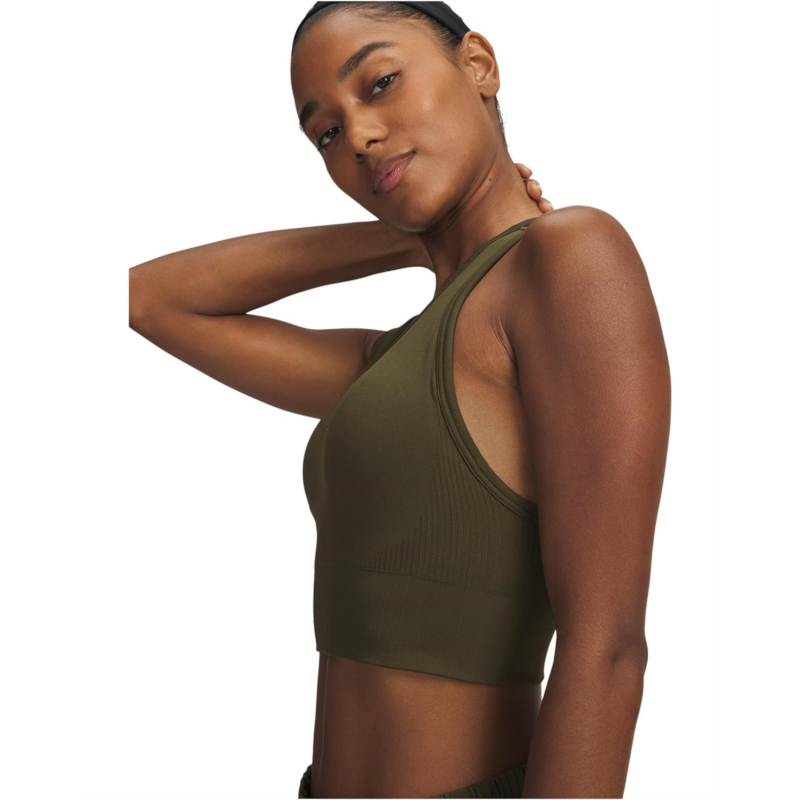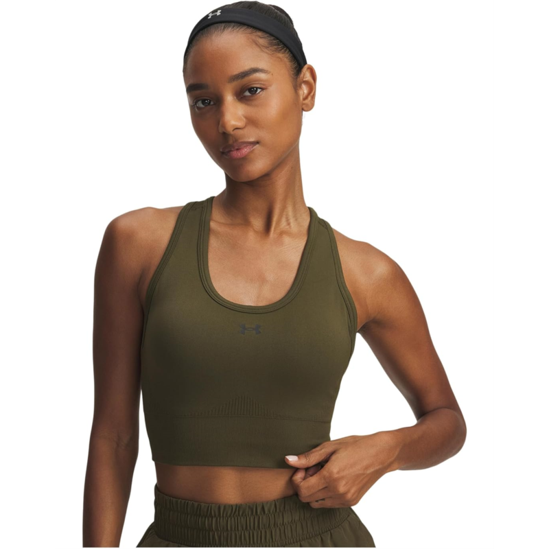- Power through every workout styling the Under Armour Vanish Seamless Mid Impact Sports Bra, designed for those who push their limits. The adjustable crisscross back straps offer a customized fit, while the wire-free, pull-on design delivers effortless comfort and support. Engineered with seamless construction to minimize chafing, this bra keeps you focused on crushing your goals. Whether youre hitting the gym, running, or flowing through yoga, Under Armours game-changing innovation ensures you stay cool, confident, and in control.