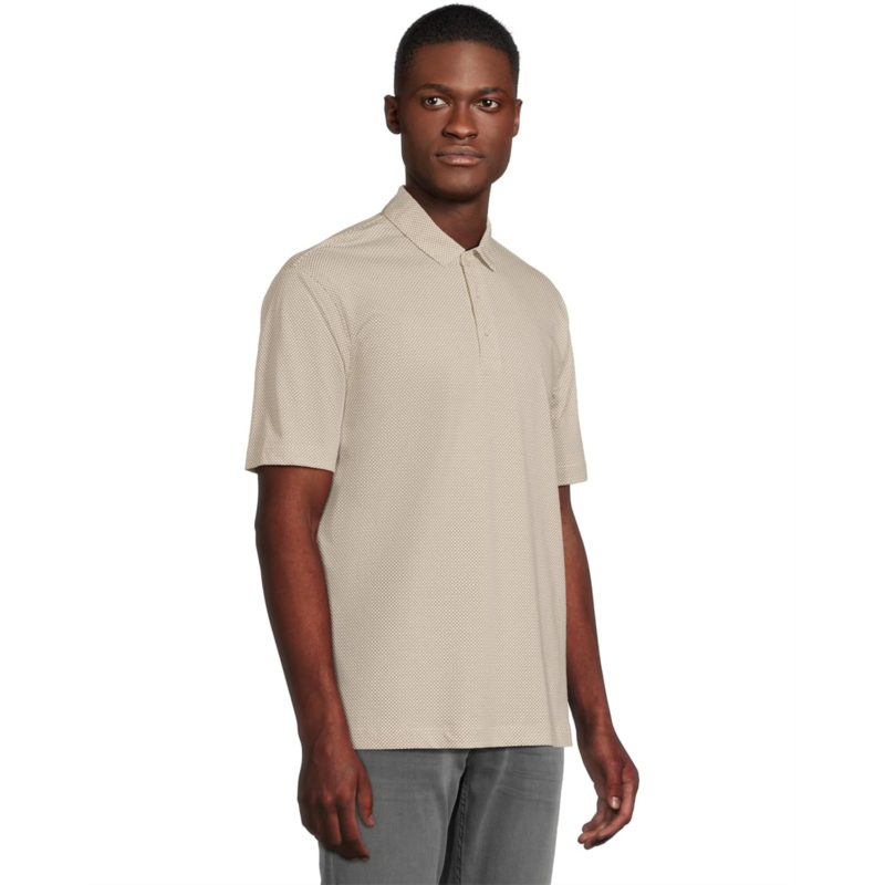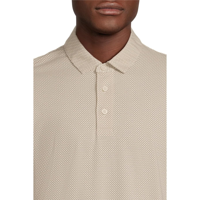 - The Armani Exchange All Over Logo Polo is tailored for a regular fit that balances structure and ease. It features a spread collar, short sleeves, and buttoned front closure.
