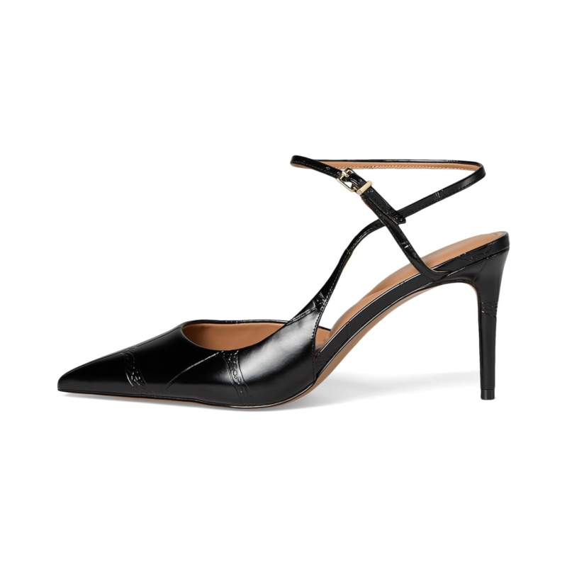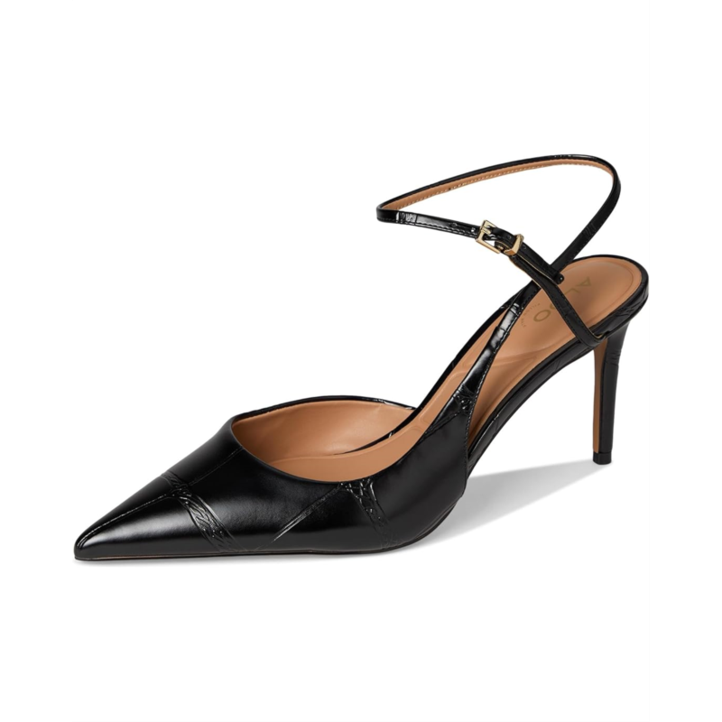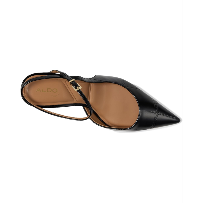 - Slay all day, strut all night in the ALDO Kymmberly. Featuring a pointed toe and chic strappy slingback design, these heels are crafted with a PU upper, lining, insole, and outsole for polished appeal. The slim buckle ankle closure adds a touch of elegance, while the stiletto heel serves serious leg-lengthening vibes. But the real game-changer? ALDOs Pillow Walk padded insoles that deliver dreamy comfort with every step-because style this bold should never hurt.