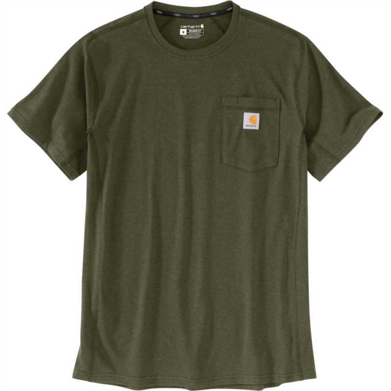 Take on the work day with confidence whenever you wear the Carhartt Mens Force Relaxed Short Sleeve T-shirt. The cotton and polyester stretch plaited jersey knit fabric delivers a soft, lightweight fit and feel. The ForceA technology and FastDryA technology help you stay dry, cool and comfortable, while the ventilated side panels supply a cooling air flow for maximum comfort. Made from 65% cotton and 35% polyester stretch plaited jersey knit fabric for soft, lightweight wear