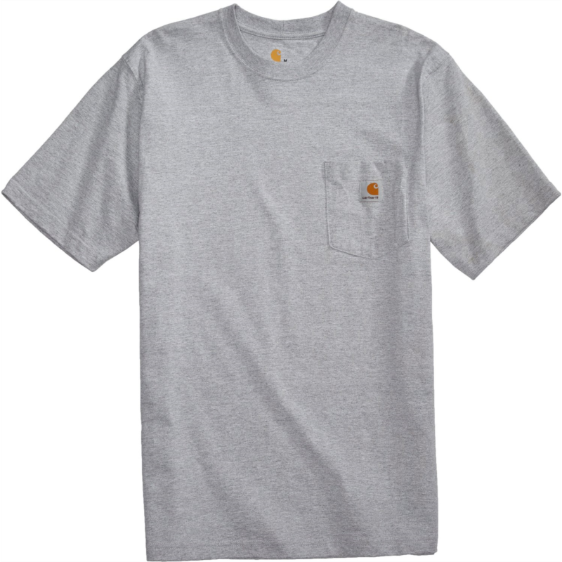 The Carhartt Mens K87 Short Sleeve Workwear Pocket T-shirt is made of a 60% cotton/40% Polyester jersey knit for a soft feel and comfortable wear and features a left chest pocket with the Carhartt logo and a rib-knit collar. Side-seam construction minimizes twisting for enhanced comfort. Original fit. 60% Cotton/40% polyester jersey knit for soft, comfortable wear