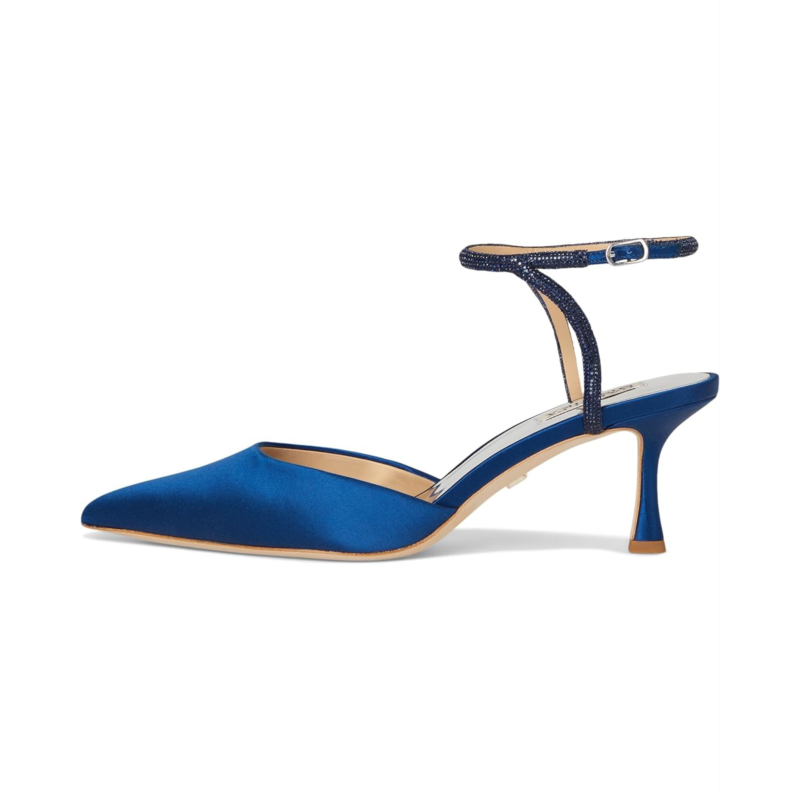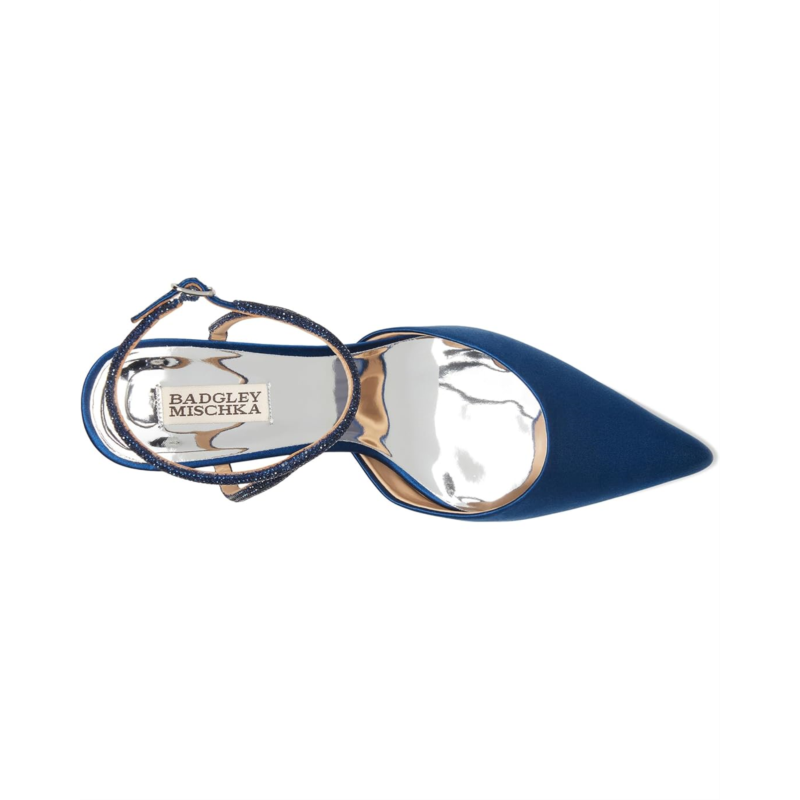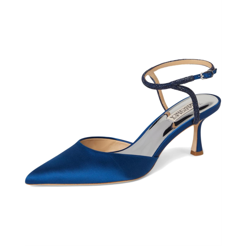 - The Badgley Mischka Autumn is a kitten heel pump with an embellished ankle strap featuring adjustable buckle closure. With a pointed toe silhouette, the sandal has silk upper construction and breathable leather lining for added comfort.