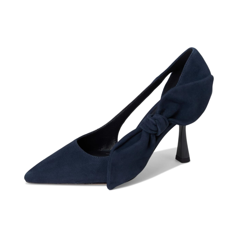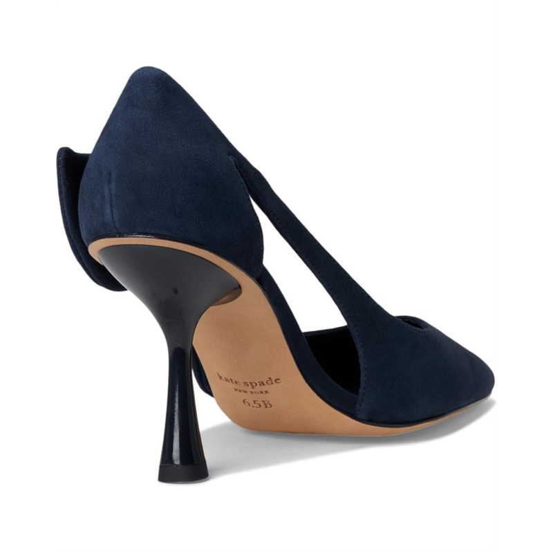 - The Kate Spade New York Bunnie Suede Pump features a sleek pointed toe and a stiletto heel for a confident stride. The standout detail? A whimsical oversized bow perched at the front, bringing chic flair to this slip-on silhouette.