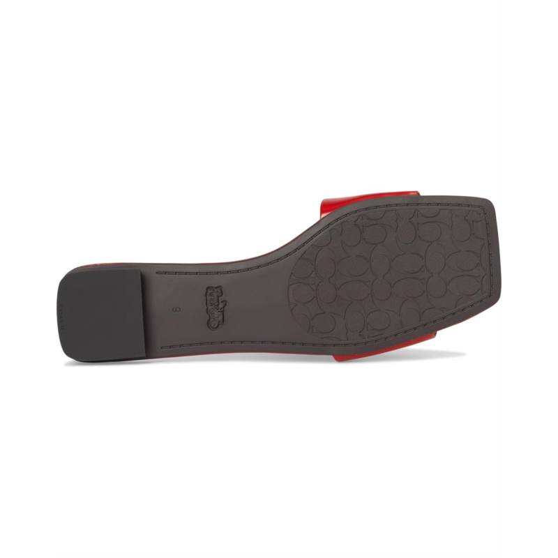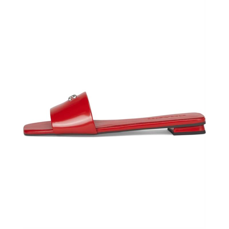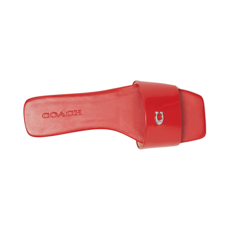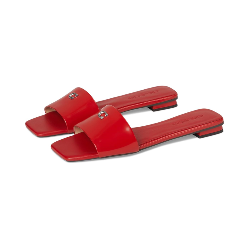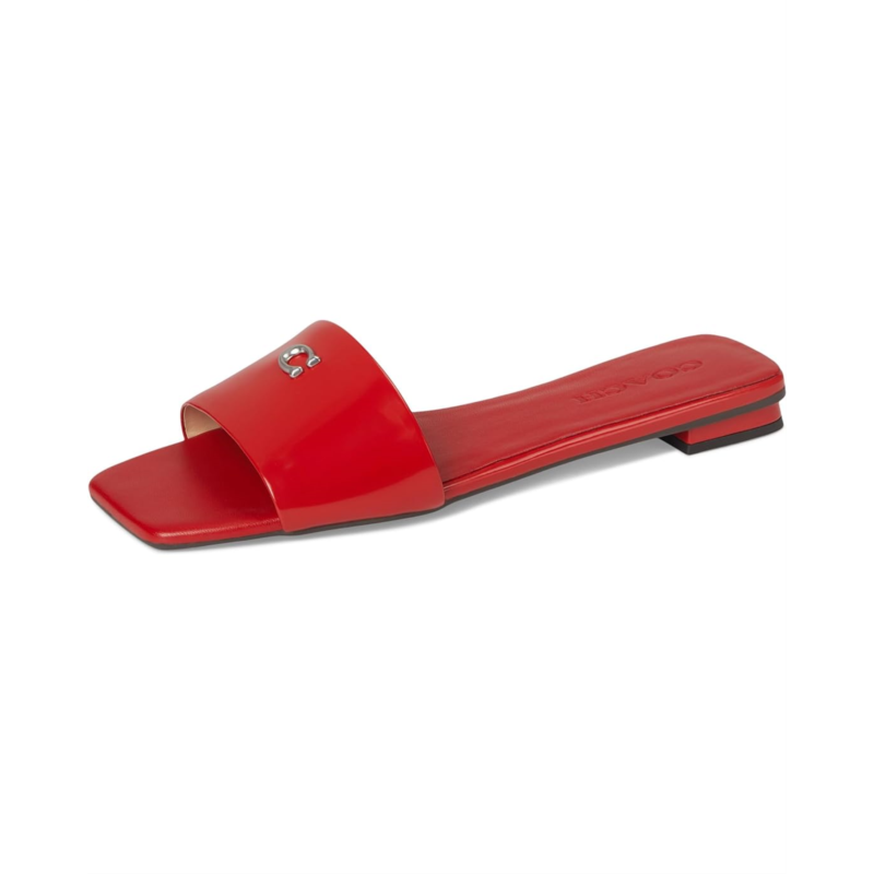- Slide in, step out, and feel the freedom wearing the COACH Sculpted C Sandals. Crafted from leather upper, man-made leather lining, and rubber insole, this pair of slip-ons features open square toe, wide strap detailing with brand hardware logo, low-top silhouette, low stacked heel, and brand detailing on the footbed.