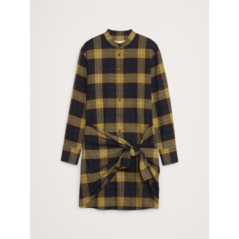 - An easy shirt dress in our softest cotton flannel, we added a tie front and elastic at the back to define the waist.