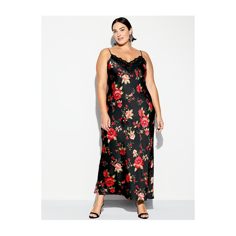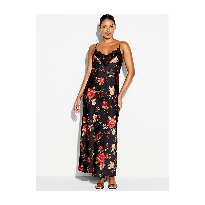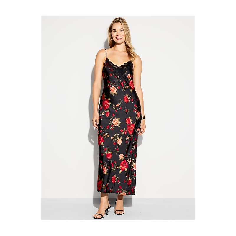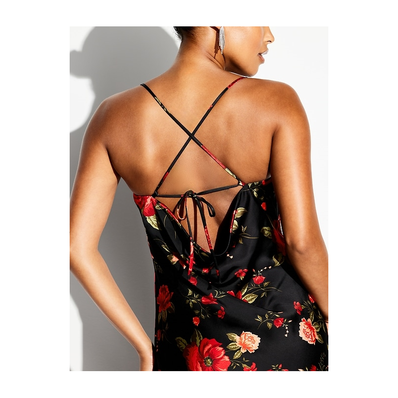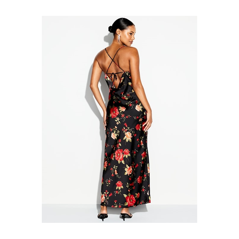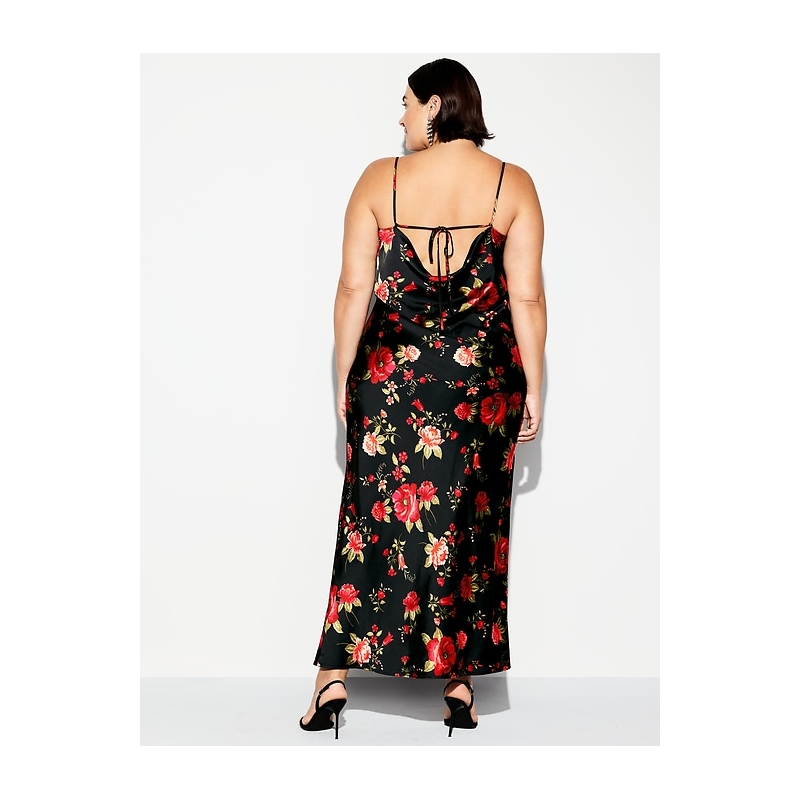 - body-skimming satin is cut on the bias for a perfect fit