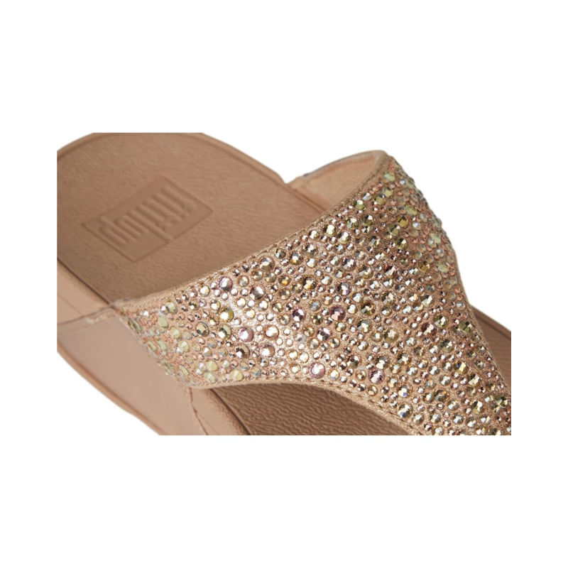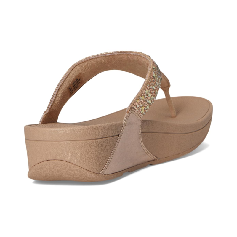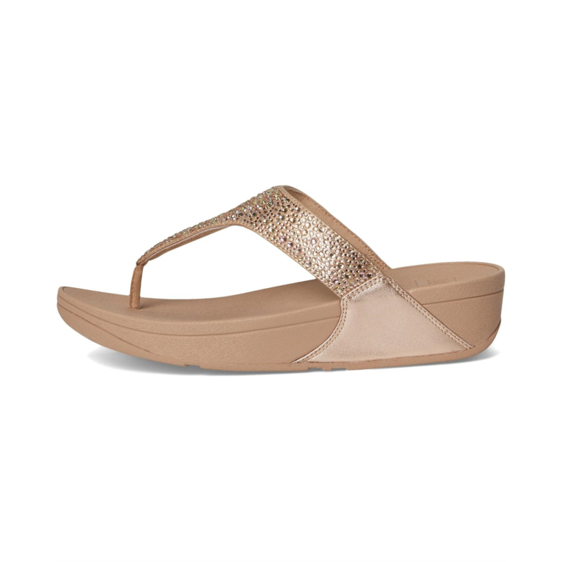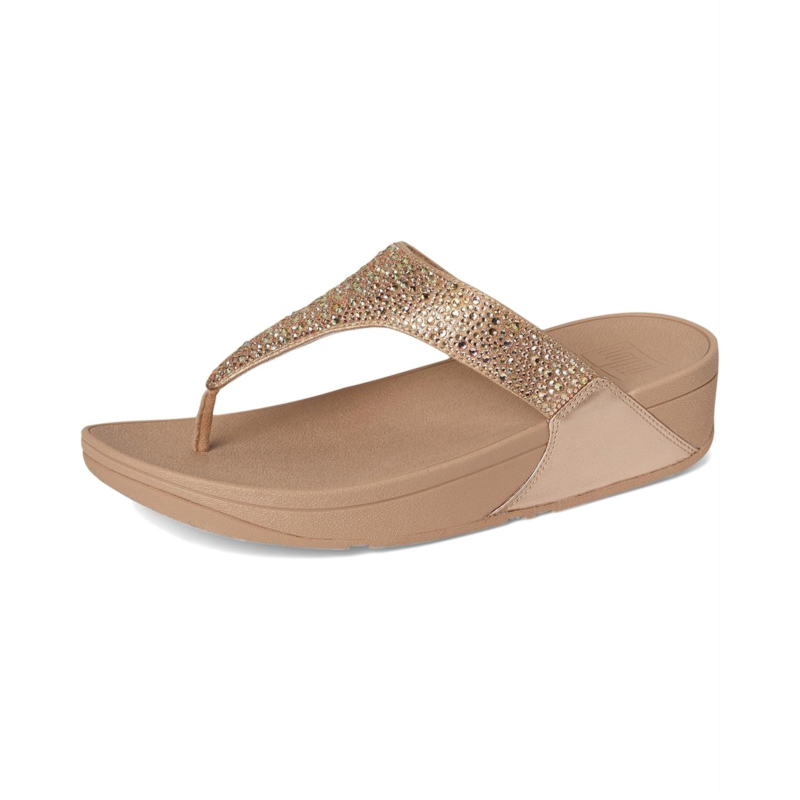 - Bring a shimmery hint of modern allure to your look with the FitFlop Lulu Crystal-Mix Toe-Post Sandals. Featuring a microfibre lining and upper, these slip-ons offer a luxurious feel. The wedge heel and open almond toe add a chic flair, while the slip-resistant rubber outsole ensures stability with every step.