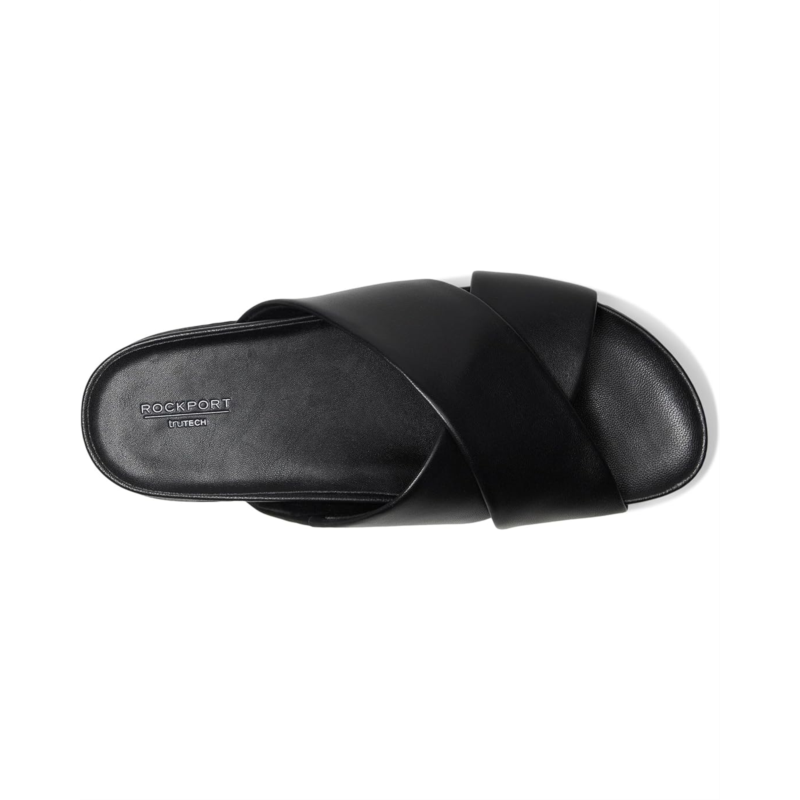 - A staple for any wardrobe, the Rockport Leia casual sandal combines style and comfort. This sandal features a slip-on silhouette, crisscross straps and a round toe. This sandal will keep you looking chic all-day. Featuring truTECH technology for lightweight shock absorption.