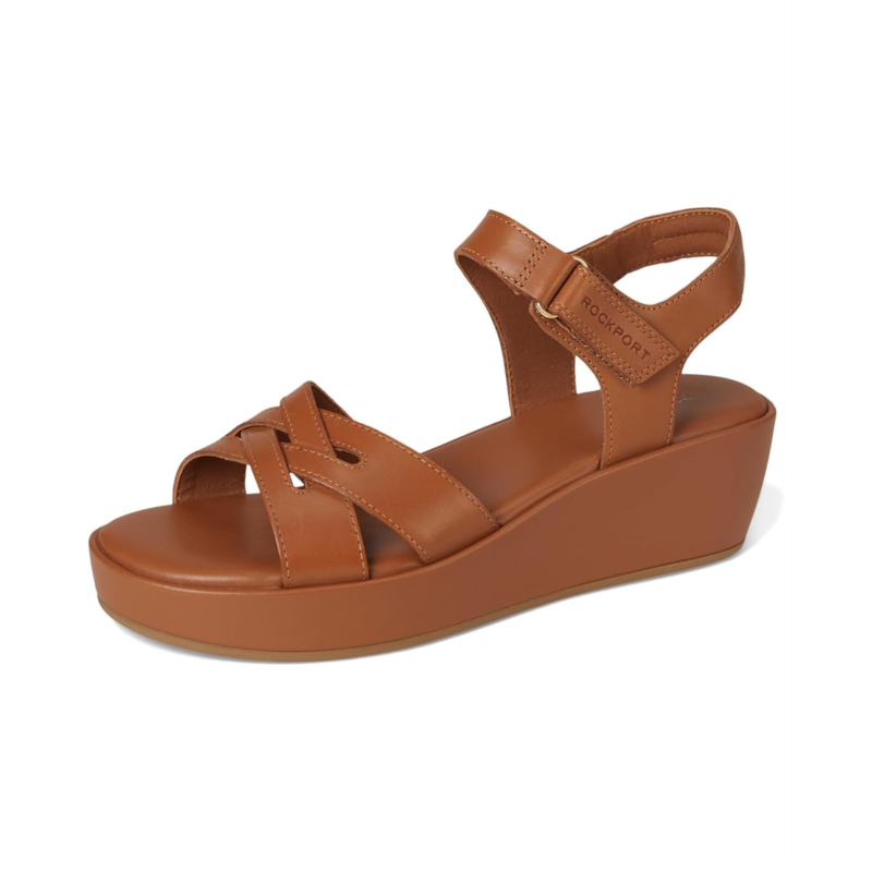 - A staple for any wardrobe, the Rockport Amira wedge sandals combine style and comfort. It offers crisscross straps, an open toe, and a cushioned insole, to keep you on your feet. Featuring truTECH technology for lightweight shock absorption. The sandals feature leather upper, polyester lining, and foam footbed.