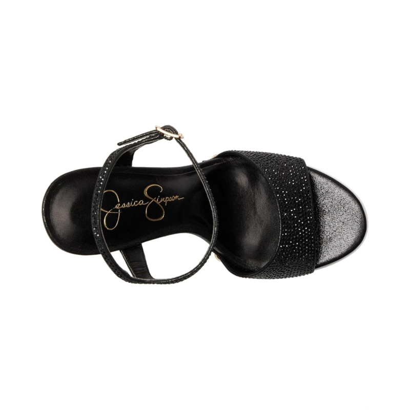- Hit the floor wearing the classy Jessica Simpson Calenta. Crafted from faux leather upper, polyester lining, and insole, this pair of sandals features open round toe, cone heel, ankle strap buckled closure, and brand detailing on the footbed.