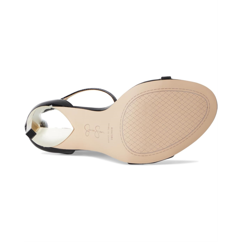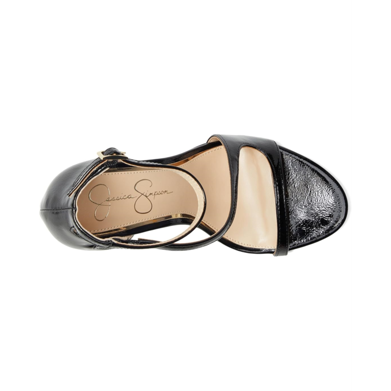 - Styled with an asymmetrical strap design for an eye-catching appeal, make a stylish entry into a party or event wearing the Jessica Simpson Qamille Asymmetrical High Heel Sandals. These heeled sandals are made of a cushioned insole and synthetic lining. The crinkle patent synthetic upper has an ankle strap with buckle closure for added support. Whether you''re dressing up for a fashion event or a formal event, these sandals are a great choice.