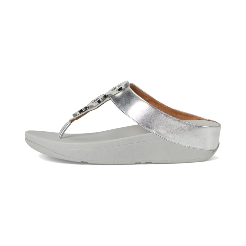 - Try style and comfort in one, the FitFlop Fino Resin-Hoop Leather Toe-Post Sandals-where comfort meets chic! Crafted with a sleek microfibre-lined upper for a plush feel, these sandals feature a stylish T-shaped foot with a round embellishment that adds a touch of flair. Designed for an average to wide fit, they offer slip-resistant traction with their durable rubber outsole, ensuring every step is secure. The easy slip-on design makes them perfect for everyday wear.