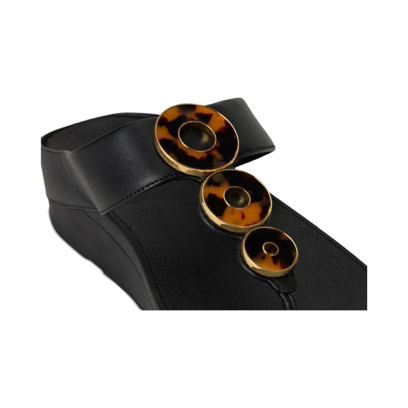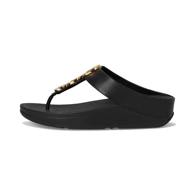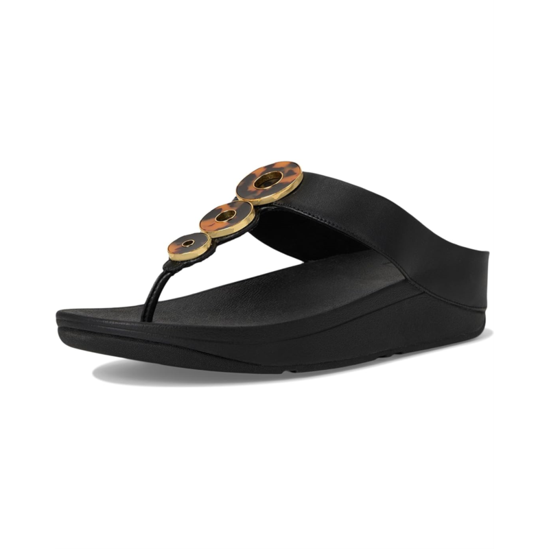 - Try style and comfort in one, the FitFlop Fino Resin-Hoop Leather Toe-Post Sandals-where comfort meets chic! Crafted with a sleek microfibre-lined upper for a plush feel, these sandals feature a stylish T-shaped foot with a round embellishment that adds a touch of flair. Designed for an average to wide fit, they offer slip-resistant traction with their durable rubber outsole, ensuring every step is secure. The easy slip-on design makes them perfect for everyday wear.