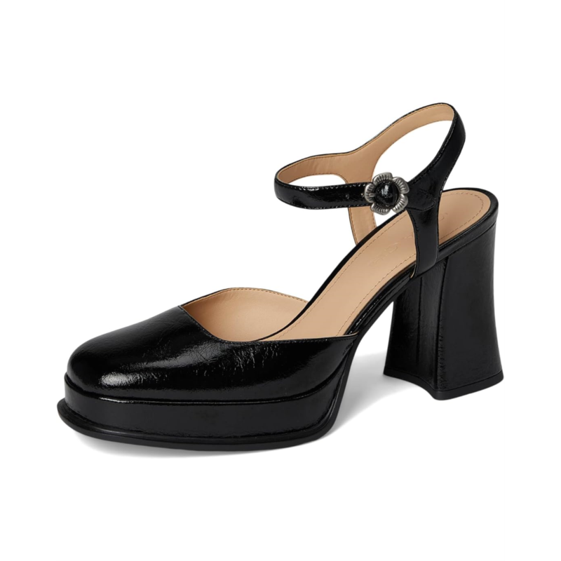 - Make a statement donning the COACH Pumps With Tea Rose. Constructed with sleek leather upper and soft man-made leather lining, these pumps exude sophistication. The leather footbed ensures lasting comfort, while the ankle strap with buckle closure adds a modern touch. Featuring platform and block heels, these pumps are perfect for adding a touch of glamour to any outfit.