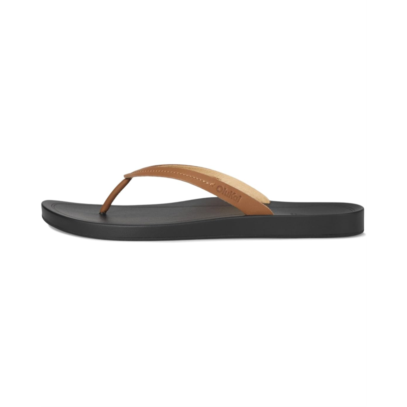 - Walk the shore in style wearing the OluKai Lalahi. Crafted from leather upper, lining, and EVA insole, this pair of flip-flops features open round toe, thong style strap, slip-on style, and arch support. Its sleek three-point design and minimalist aesthetic make it a clean and smooth addition that complements your everyday wardrobe.