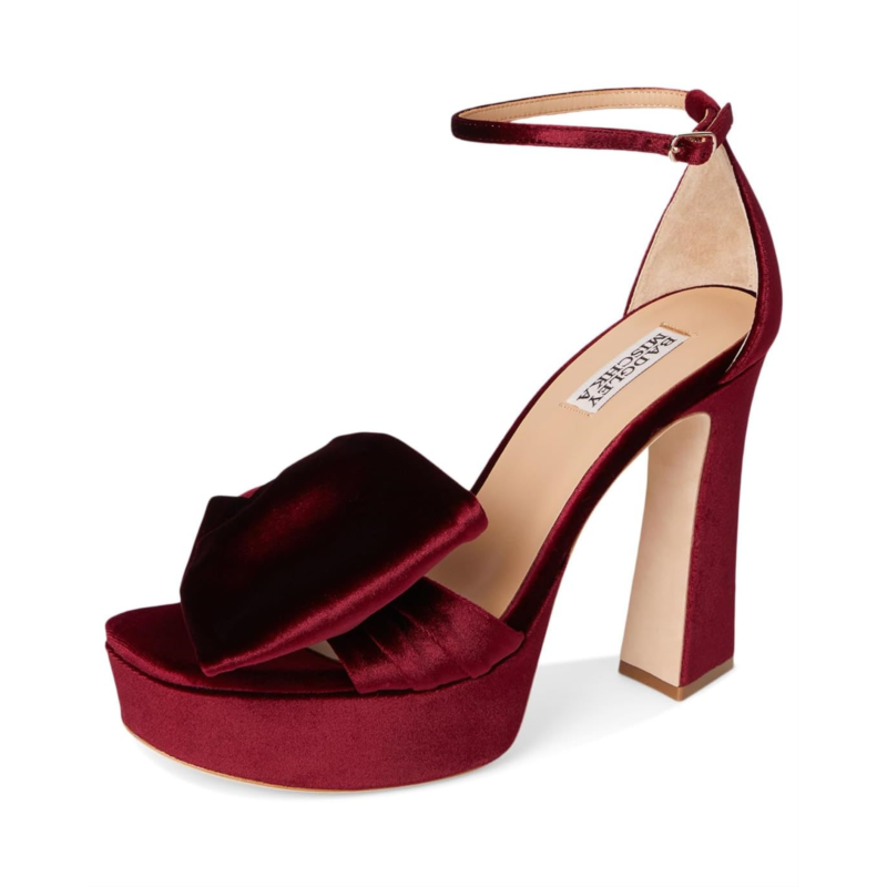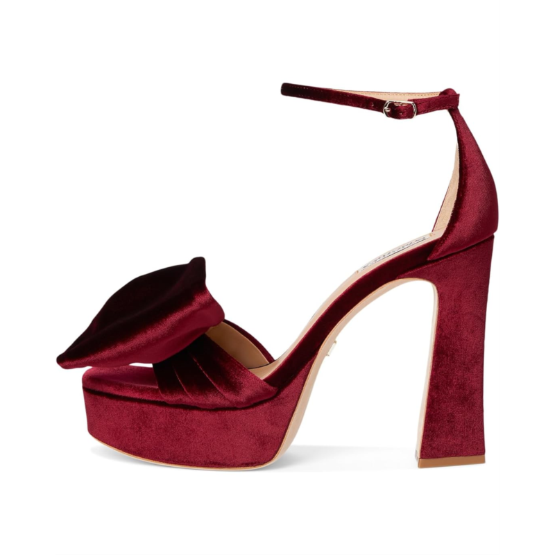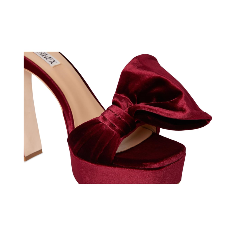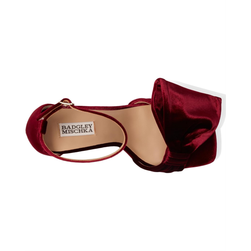 - Sculpted for the bold, the Badgley Mischka Alora sandals are crafted from silk upper, leather lining, and insole. These platform sandals with bow detailing on the vamp features round toe, block heels, and buckle closure.