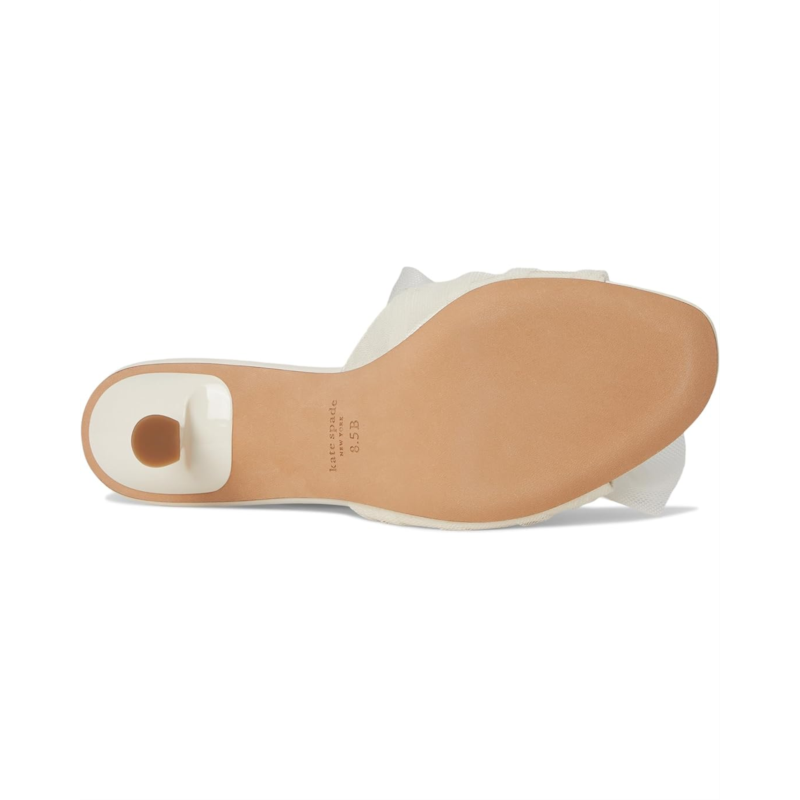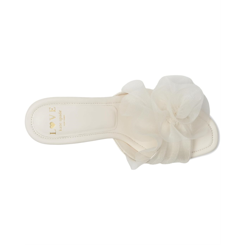 - Up your footwear game adding this Kate Spade New York Flourish slip-on to your collection. It has leather upper with a 3D flower strap and slide on style. Lined with leather the slip on features open toe, leather insole and wedge platform.