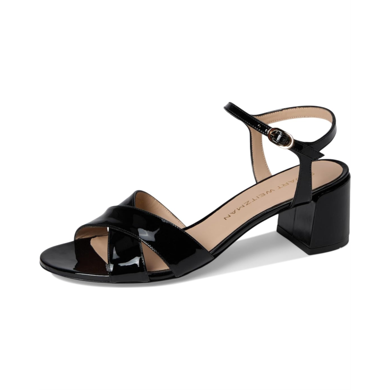 - Embrace the allure of these exquisite Stuart Weitzman Dayna Block 50 sandals. This block heel style features polyurethane upper construction and buckle adjustable ankle strap closure.
