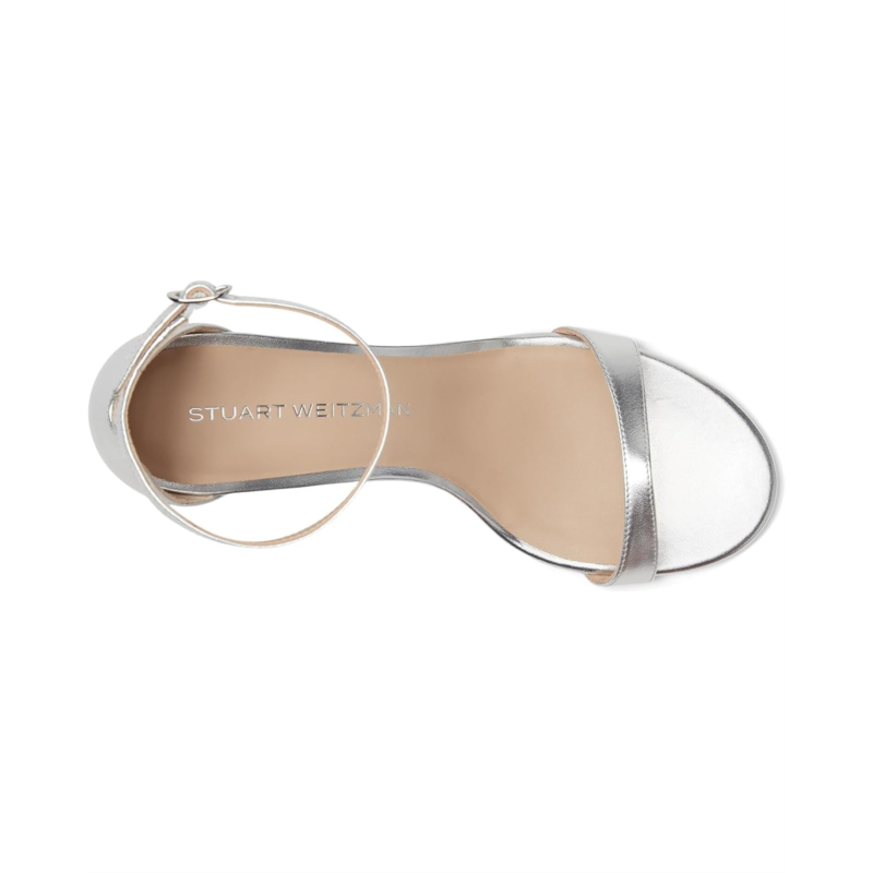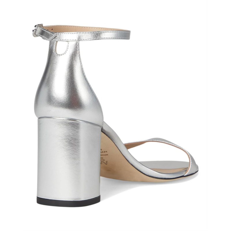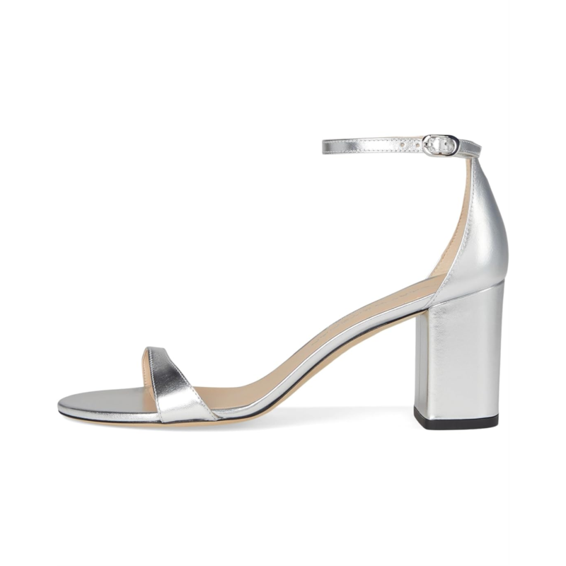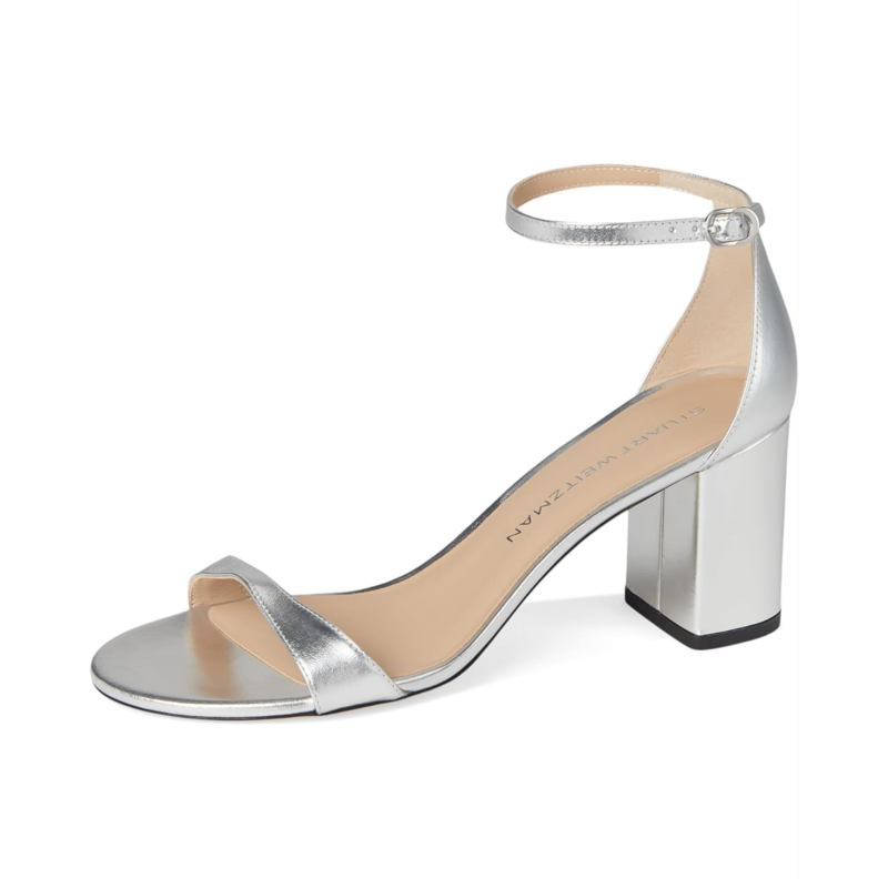 - Where style meets grace wear this beautiful footwear Nudist Block 75 by Stuart Weitzman Crafted with a sleek leather upper, lining, and insole, this stunning heel provides a sophisticated finish to any outfit. The stiletto heel adds the perfect amount of lift, while the buckle ankle strap ensures a secure and comfortable fit. With an open toe design, this shoe is your go-to for effortless glamor at every occasion.
