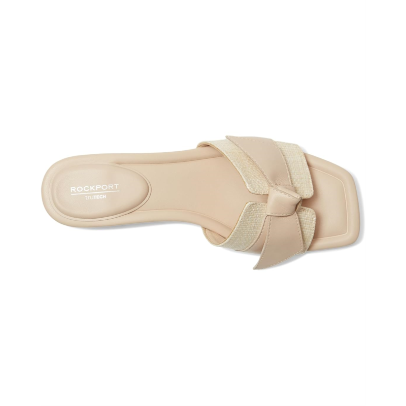 - The Rockport Carsie dress sandal is an epitome of sophisticated style. It offers a slip-on silhouette and bow detailing on the upper. This sandal will keep you looking chic all-day. Featuring open square toe, Trutech technology for lightweight shock absorption, block heel, and brand detailing on the footbed.