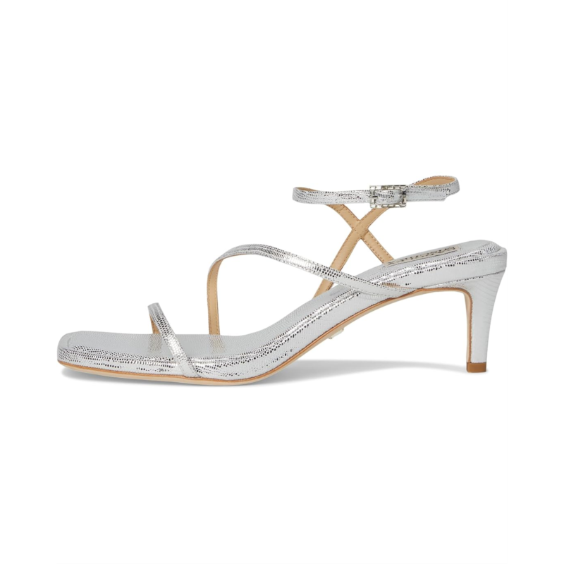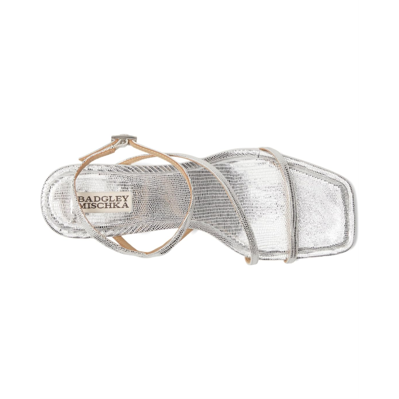 - Get ready to strut your stuff donning the Badgley Mischka Gracelyn heels. Crafted with glossy snake-embossed metallic leather upper, these heels are a show-stopping addition to your shoe collection. The breathable leather lining and leather insole guarantee all-day comfort, while the crisscross straps and open square toe design add a touch of modern flair. Complete with a low, leg-lengthening kitten heel, these heels are both stylish and practical for any occasion.