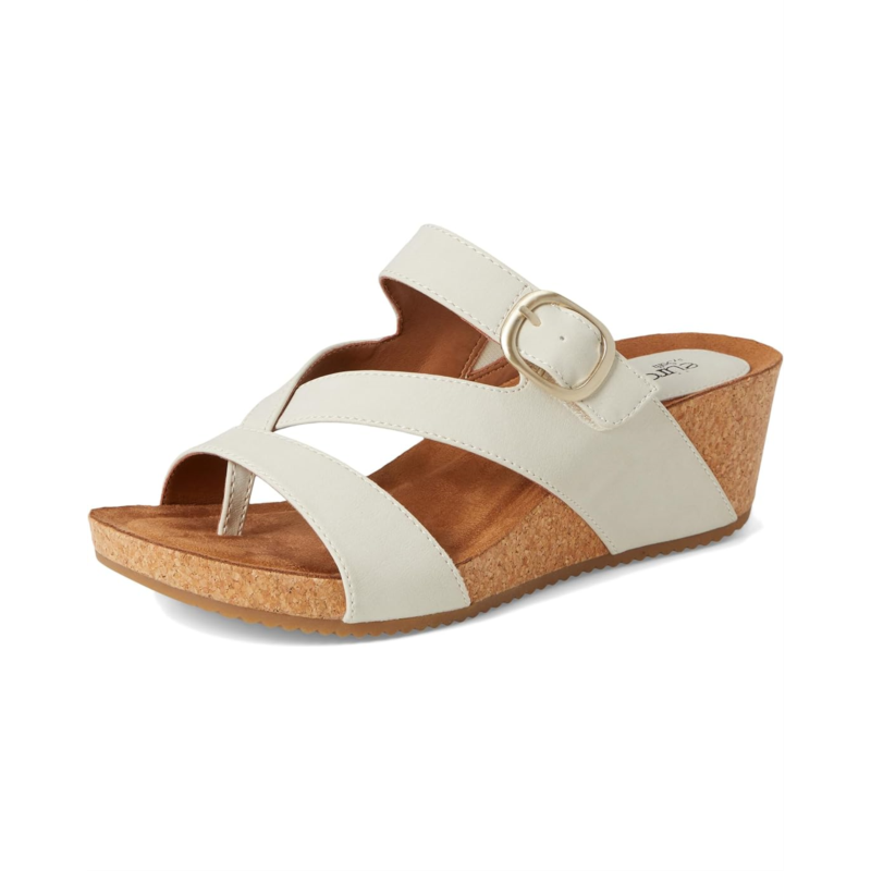 - Ascend in heightened comfort as you wear the EuroSoft Emrie Sandals. The slip-on footwear features polyurethane upper construction with toe loop and buckled ankle strap for a secure fit.