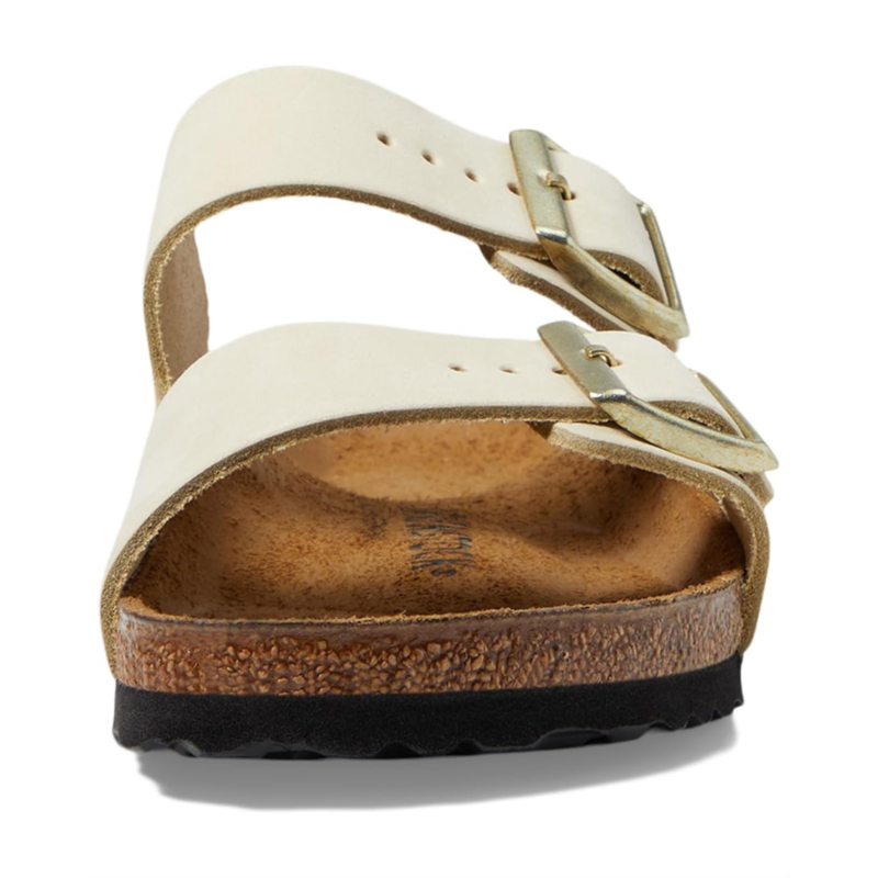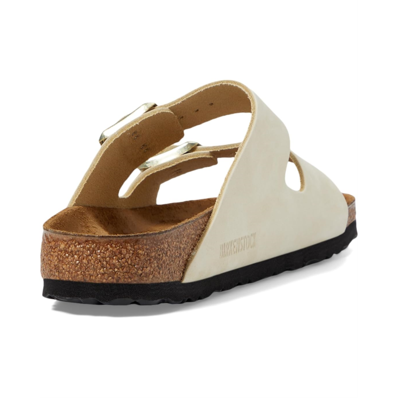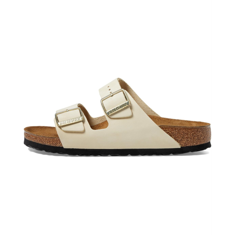 Understanding Widths: Narrow accommodates Narrow to Regular widths. Regular accommodates Regular to Wide Widths.- The legendary Arizona is for many, the epitome of the Birkenstock sandal and has been one of the most popular models, delighting wearers worldwide for decades. The iconic design of Birkenstock Arizona Soft Footbed - Nubuck Leather sandal is simple, a two-strap upper that can be individually adjusted to the wearers feet using two sturdy buckles complemented with the signature comfort of the Birkenstock footbed ? guaranteeing a good fit and firm support. The variety of available materials and colours make the model a sandal for all walks of life. The arch supports that run alongside the sides of the footbed surround the tarsal bones inside and out. This gives the foot the stability it needs when it takes a step. The very deep molding in the heel area supports the foot tissue and holds the heel bone firmly in its natural position. This provides the foot with nearly as much support when it is in a sandal as when it is in a closed shoe.