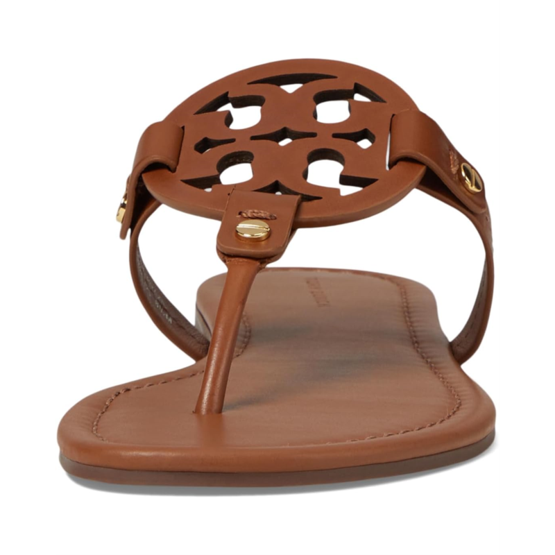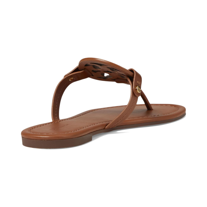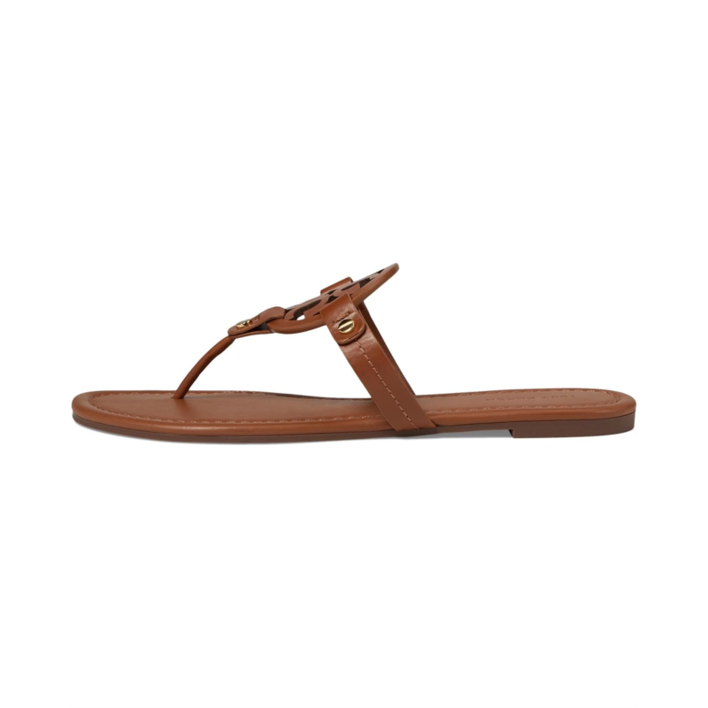 - The Tory Burch Miller Flip Flop Sandal offers iconic inspiration with a smooth leather upper, signature medallion logo accent at the vamp, and studded embellishments.