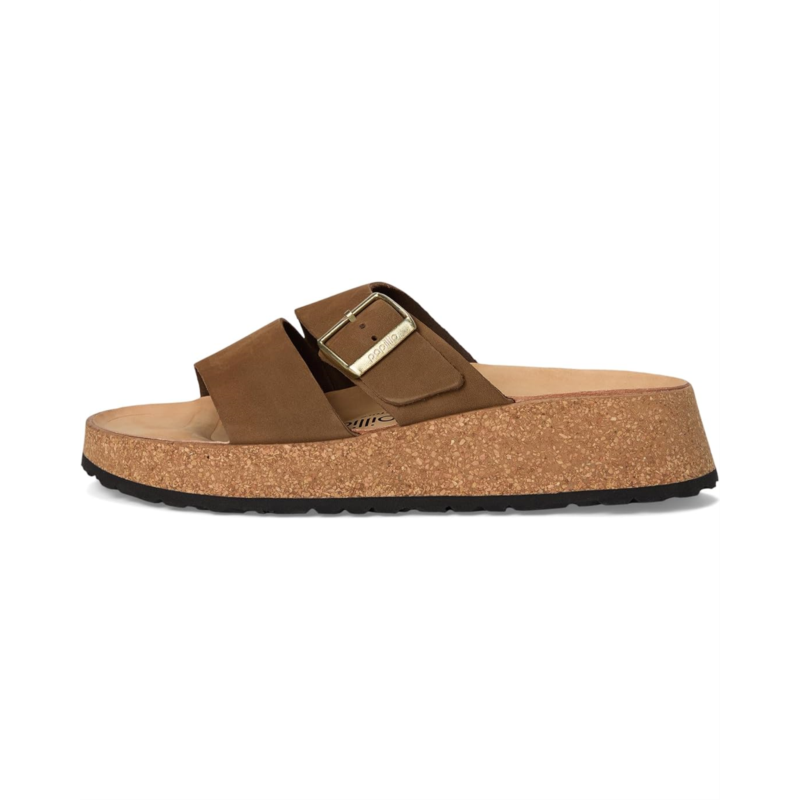 - A new wedge from Papillio by Birkenstock, Almina Platform Sandal - Nubuck. Featuring contoured cork footbed that provides long-lasting comfort, brand detailing on the footbed, and open round toe design.