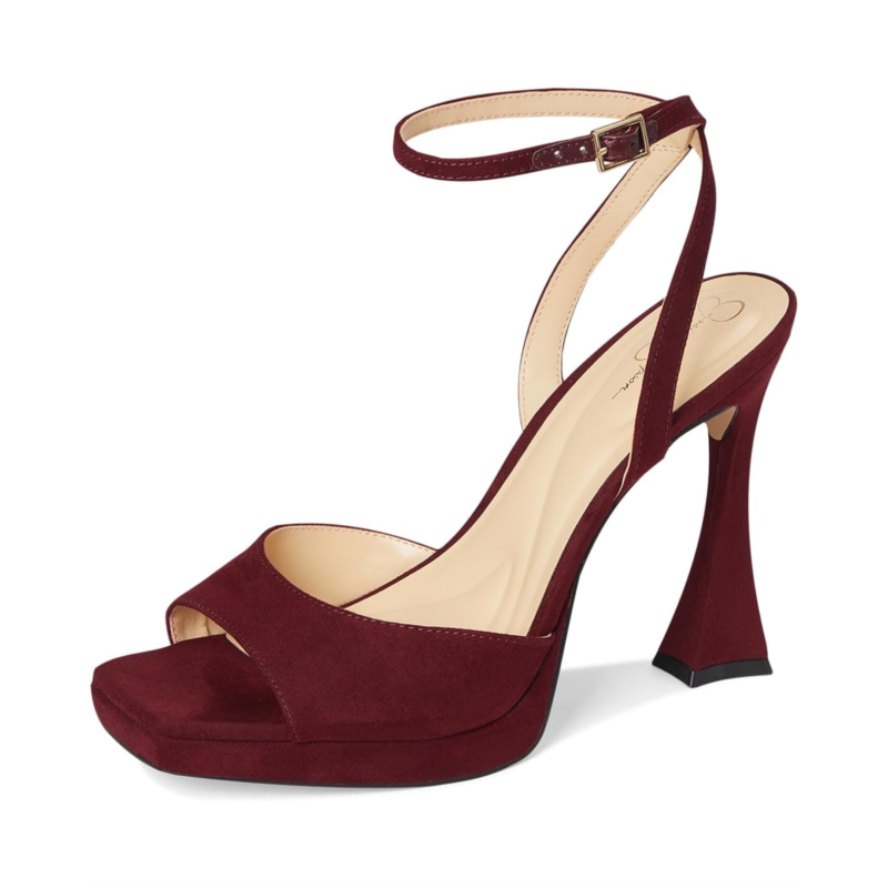 - The Jessica Simpson Jixte Platform Sandals are a classic silhouette, designed to elevate your look with retro-inspired flair. Featuring a chunky comma heel, modest platform, and angular square toe, it blends nostalgic charm with modern edge. The buckle adjustable ankle strap ensures a secure fit.
