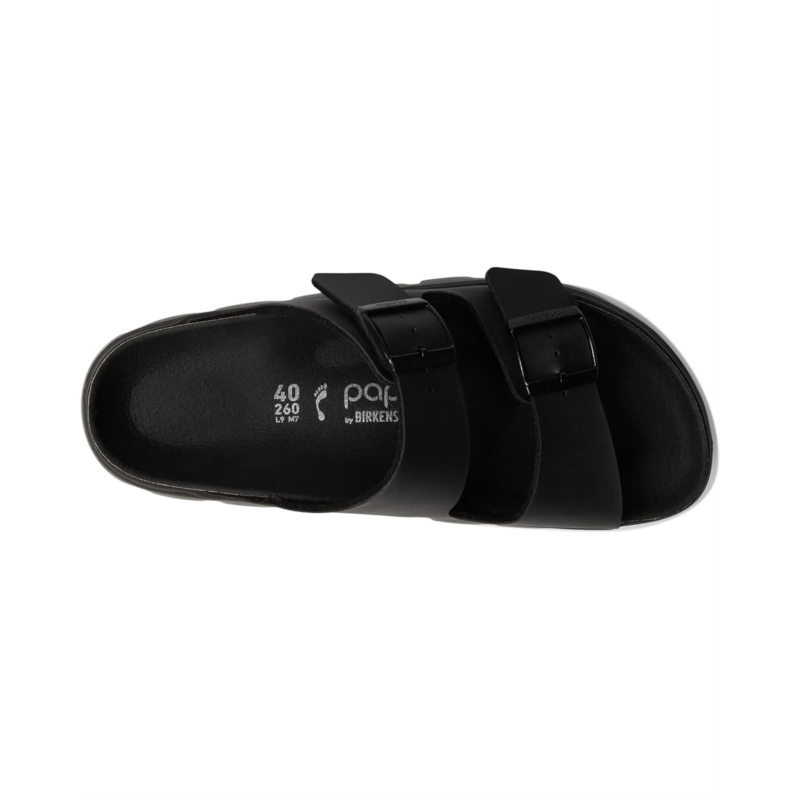 - A platform sole takes the Arizonas classic design to new heights?and your style along with it. Its smooth Birko-Flor upper creates an instant color contrast against its stacked sole. Featuring a contoured footbed that gives you the support of a BIRKENSTOCK sandal.