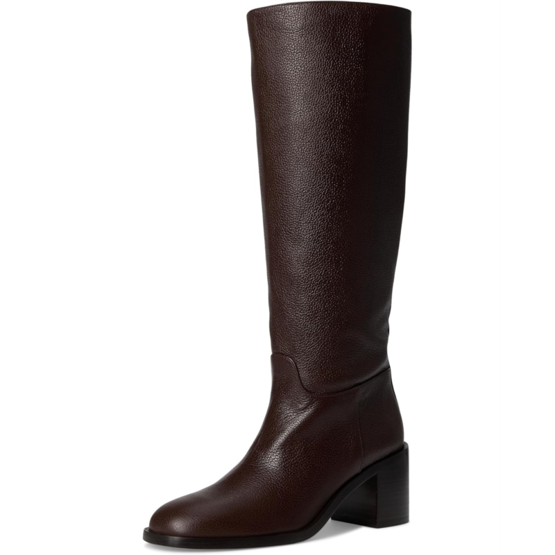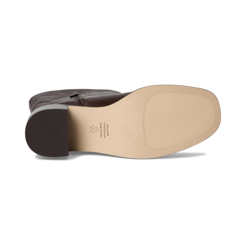 - Elegant in appeal and superior in quality, the Stuart Weitzman Finn Boots are perfect for all-season wear. The knee-high boots come with a grainy leather upper, mestizo leather lining, and a leather insole. The block heel detail elevates the look and the side zipper closure allows easy on/off.