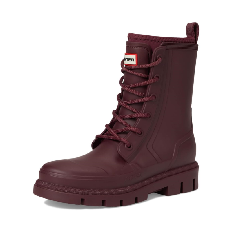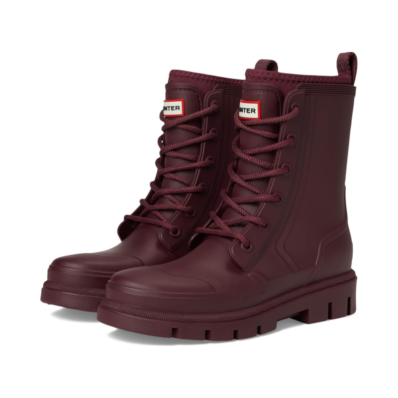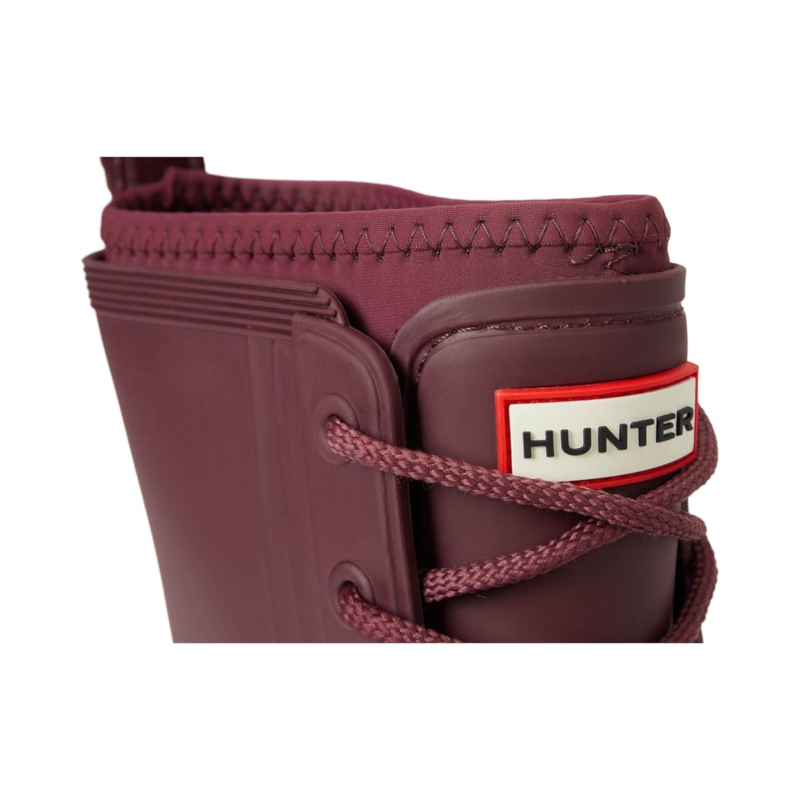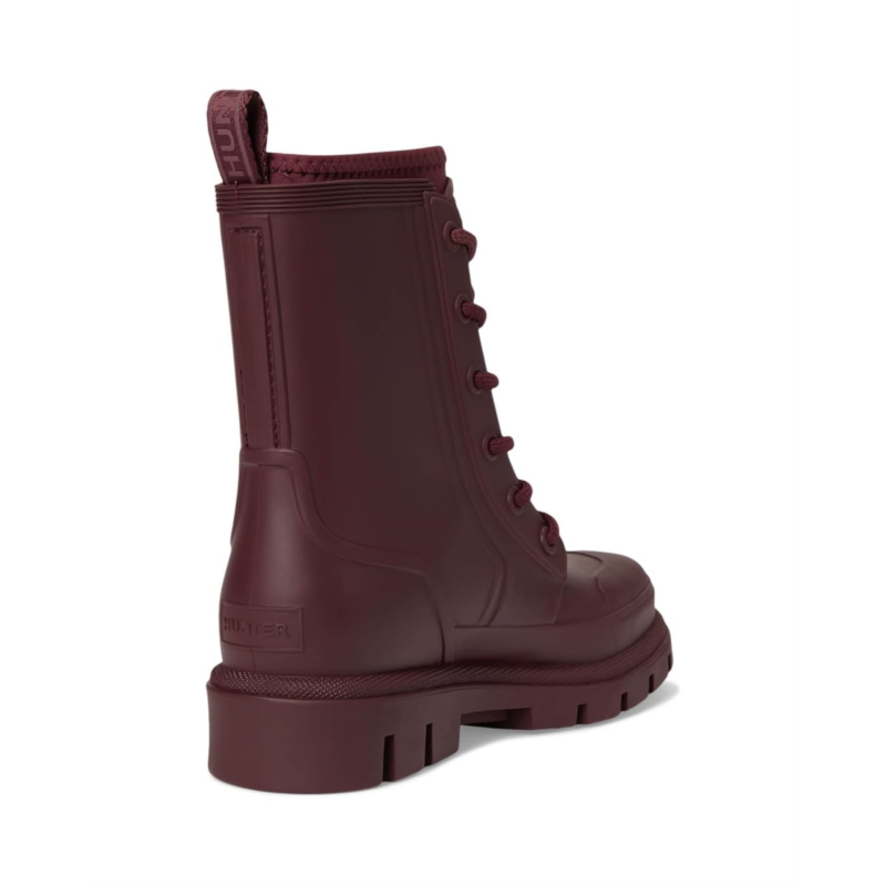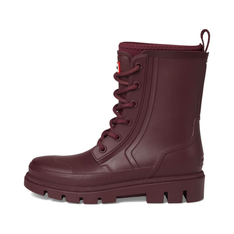 - The Hunter Diana Waterproof Mid Calf Lace Up Boot is your go-to for any weather. Crafted with a durable rubber upper and outsole, it ensures ultimate protection from the elements. The cozy polyester lining and insole offer unmatched comfort for all-day wear. Featuring a classic lace-up closure and mid-calf length, these boots provide a secure fit and versatile style. Perfect for those rainy days, the closed toe design keeps your feet dry and snug.