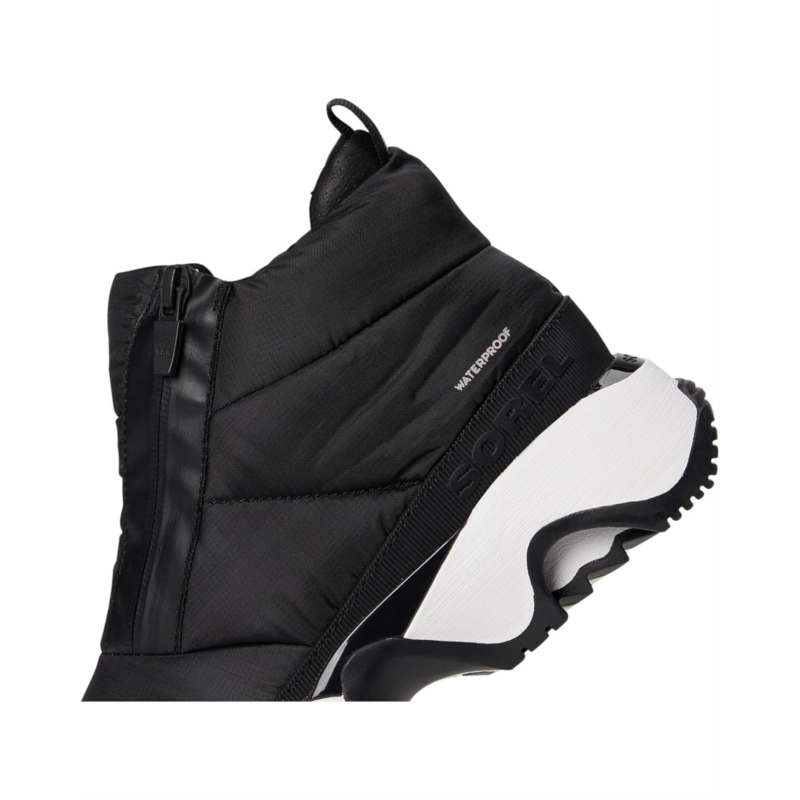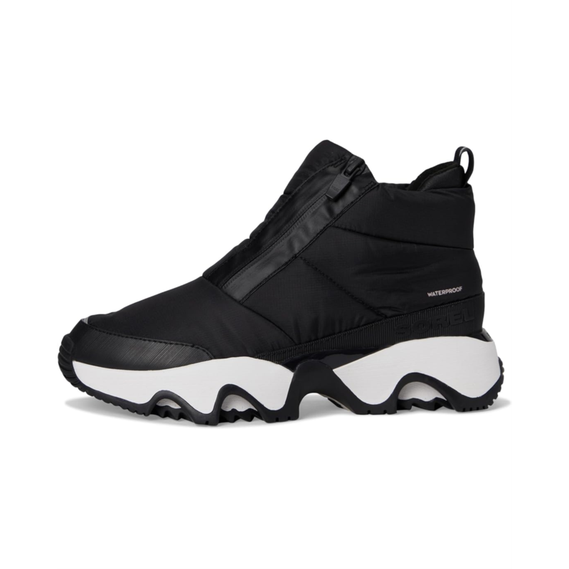 - Walk into the bold energy of the SOREL Kinetic Impact Puffy Zip Waterproof. Designed with a sleek nylon upper and cozy fleece lining, this ankle-high boot brings serious warmth and weather protection to your winter rotation. The zippered closure adds easy-on access, while the removable EVA footbed with microfleece topcover ensures cushioned steps with every stride. Wrapped in an insulated, waterproof shell, your feet stay dry and toasty no matter the forecast. And thanks to a grippy rubber outsole, traction never takes a back seat.