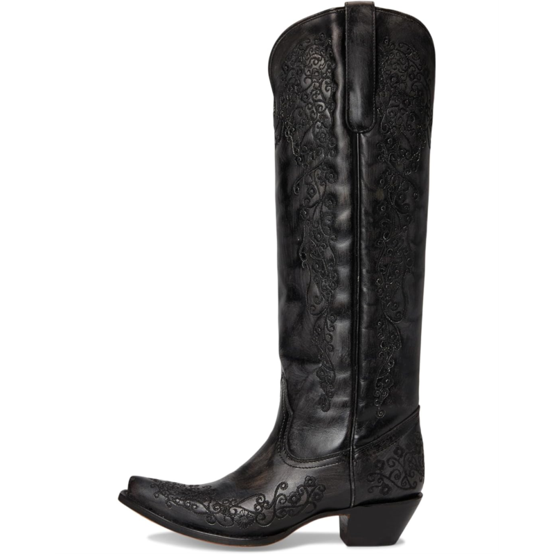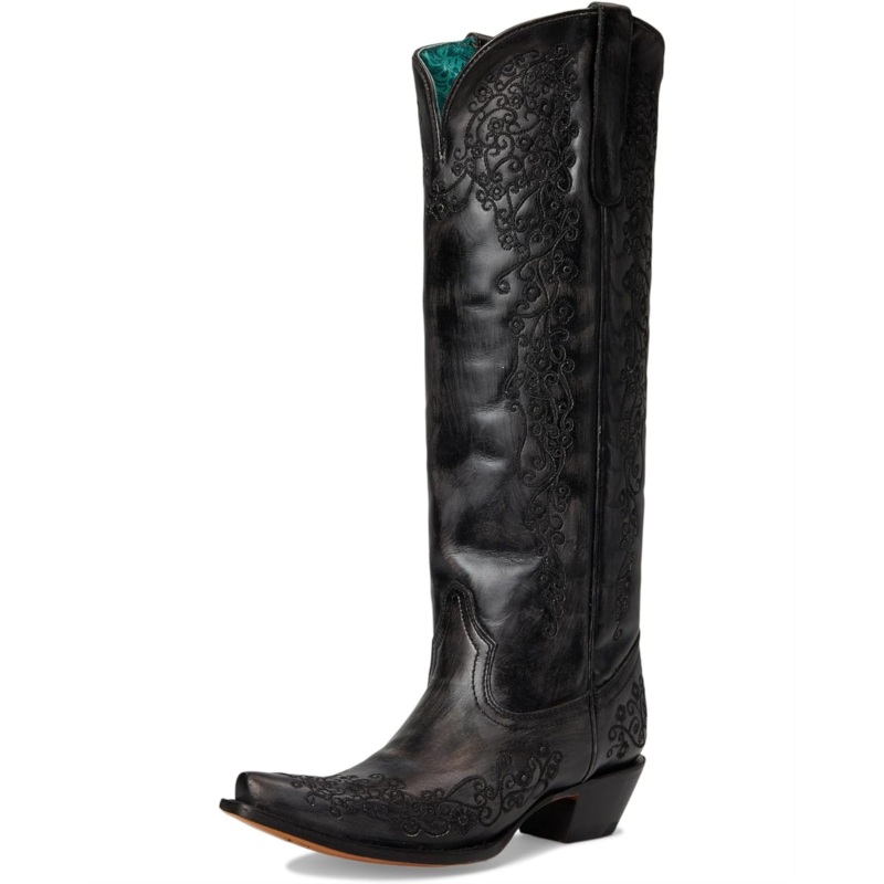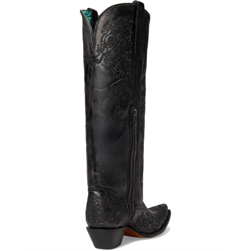 - The Corral Boots A4788 are knee-high boots that are designed with black floral embroidery and cowboy fashion heels. Their leather insole and lining make them comfortable and durable. The leather upper features a zippered side closure for easy on and off. Catch everyone''s attention wherever you go, wearing these heeled boots.