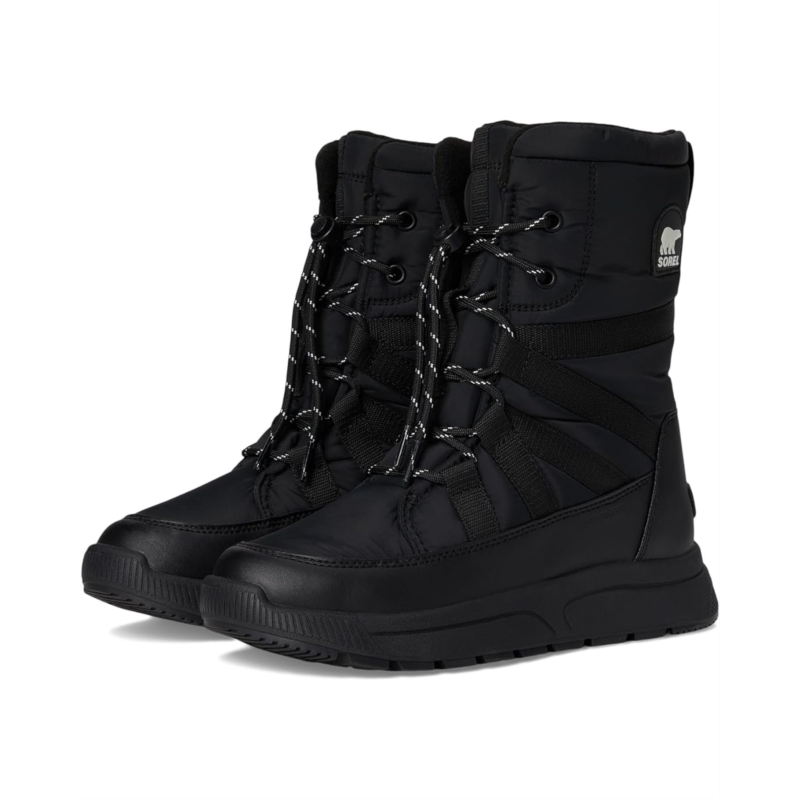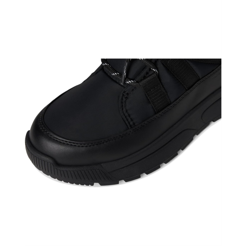 - Sporty style meets mountain ruggedness with this weather-ready boot. Now with a roomier fit, added cushioning and even better tread, youll be unstoppable. Crafted from waterproof nylon upper with synthetic overlays, adjustable lace with toggle closure, microfleece lining, and a removable plush polyurethane-like ethylene vinyl acetate footbed with microfleece topcover.