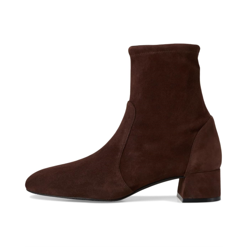 - The Stuart Weitzman Maeve Booties are ankle-high boots featuring a pull-on style for easy on and off. These heeled boots are made of a leather upper, insole, and lining. Comfortable and durable, these leather boots make a great addition to your footwear collection.