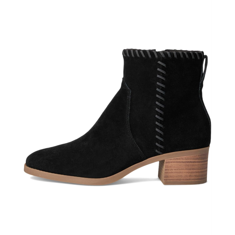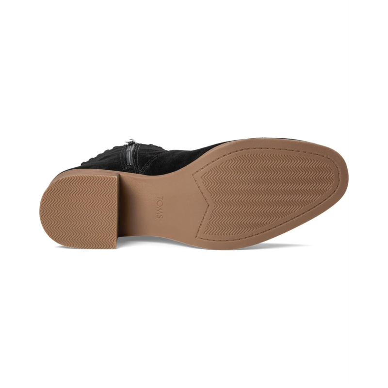 - Walk your way in absolute style and comfort wearing the TOMS Delilah Boots. These feature a medial zipper and pull tab for easy on/off and whipstitch details along the topline & lateral side. The ankle-high boots are also treated with Defender Repellent with Scotchgard protector to repel water and stains. These are crafted with a suede upper, polyester lining, and custom CloudBound foam insoles for all-day comfort & support.