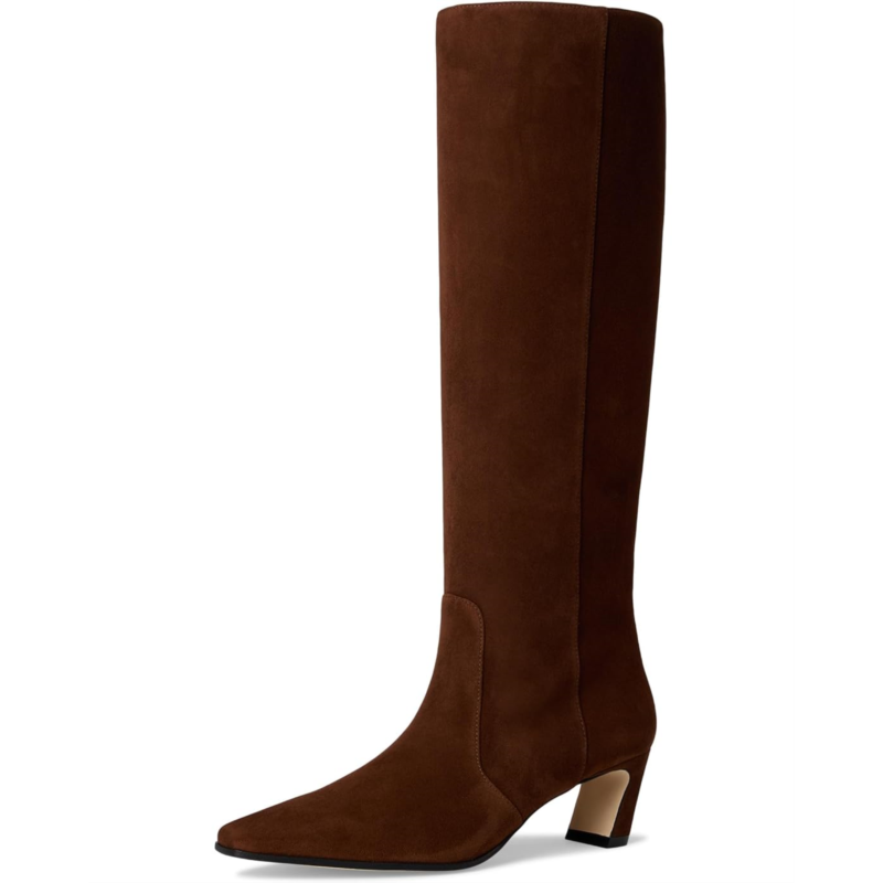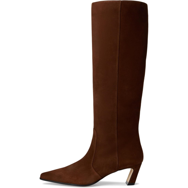 - Accentuate your look with the sophisticated style of the Stuart Weitzman Stassi Boots 50. Made with a leather upper, lining, and insole, the knee-high boots come in a premium-quality construction. These feature a pointed toe shape, a side zipper closure, and a block heel.