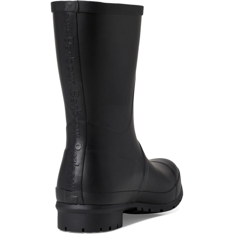 - Stay dry and fashionable wearing the Barbour Banbury Mid Welly boots! These versatile mid-calf boots feature an upper made with rubber and other fibers, making them perfect for braving the elements. The polyester lining and padded insole provide all-day comfort, while the sleek round toe design adds a sophisticated touch to your look.