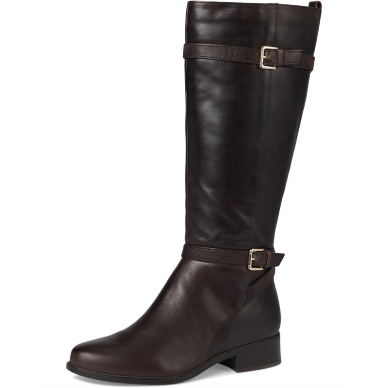 - Look chic and comfortable wearing the Rockport Harper boots. Featuring a cushioned insole and two wrap-around buckle straps that give the perfect balance of sleek and unique detail. Featuring truTECH technology for lightweight shock absorption foam that provides extra underfoot cushion and shock absorbency in the heel area. The knee-high boots feature sleek leather upper, fabric lining, cushioned foam insole, and zippered side closure.