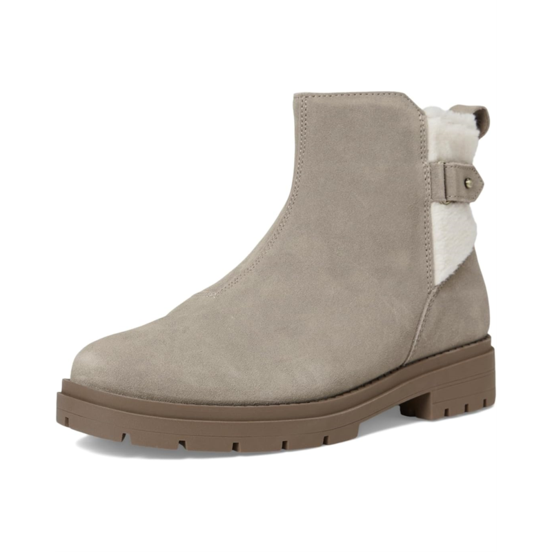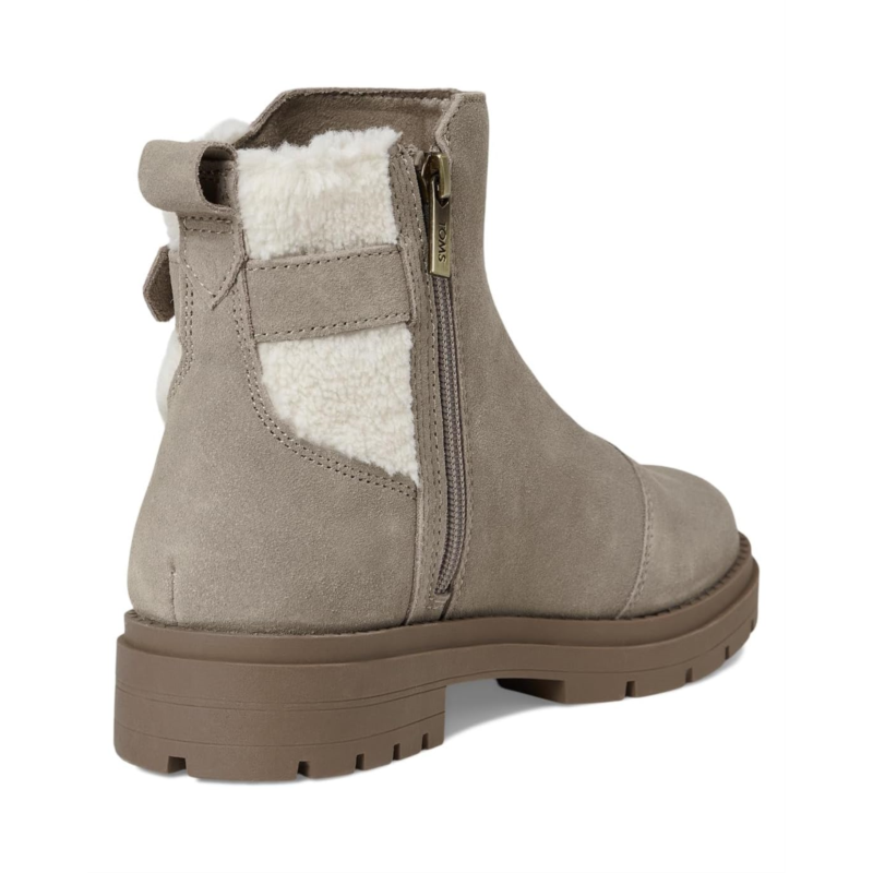 - Complement your chilly weather wardrobe with the TOMS Astrid boots. Crafted from a suede upper, these lug boots offer a decorative strap with a decorative knit gore or faux shearling, pull tab for easy on and off, polyester lining, and custom CloudBound foam insoles for all-day comfort and support.