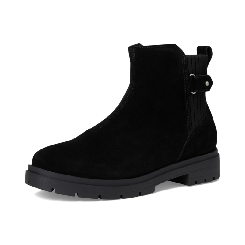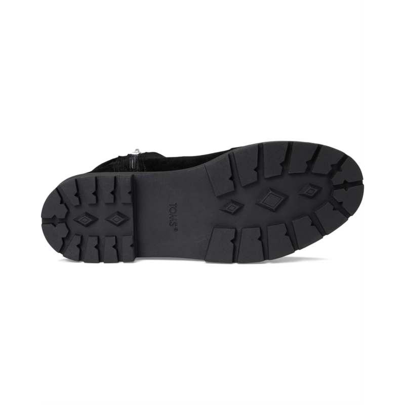 - Complement your chilly weather wardrobe with the TOMS Astrid boots. Crafted from a suede upper, these lug boots offer a decorative strap with a decorative knit gore or faux shearling, pull tab for easy on and off, polyester lining, and custom CloudBound foam insoles for all-day comfort and support.