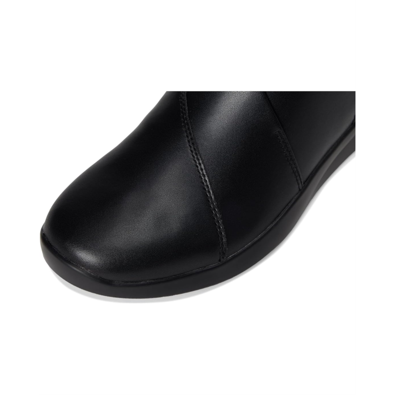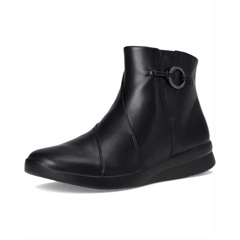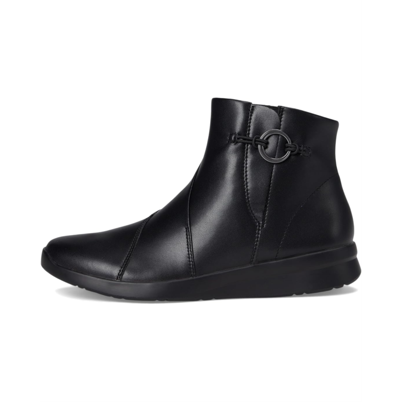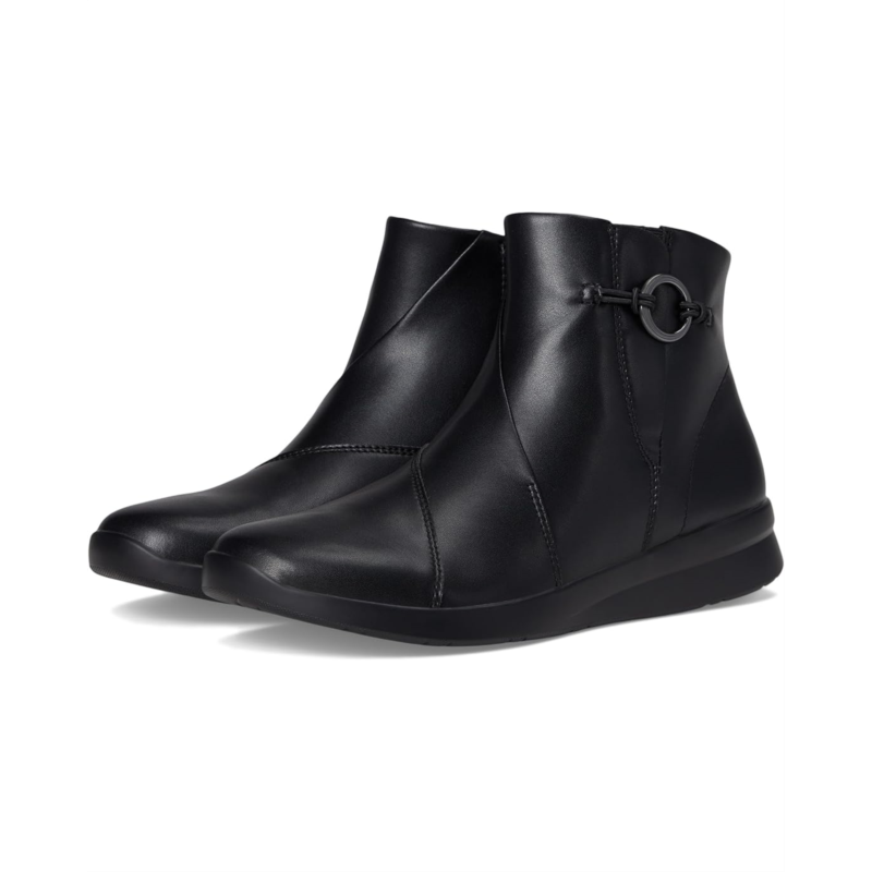 - A lightweight slip-on boot with stacks of soft underfoot comfort, the Clarks Ellowyn Deva boots arrive in premium leather with hardware for a timeless, classic look. A grippy, wedged, and rubbed TR outsole keeps steps feeling flexible and free, while the super-soft Ultimate Comfort foam footbed dials up your comfort with every move. These ankle-high boots are made of a rubber insole and mesh lining. The stretch gore insert lends a comfortable, flexible fit and assists easy on/off. These leather boots are designed with a zippered side closure for easy wear.